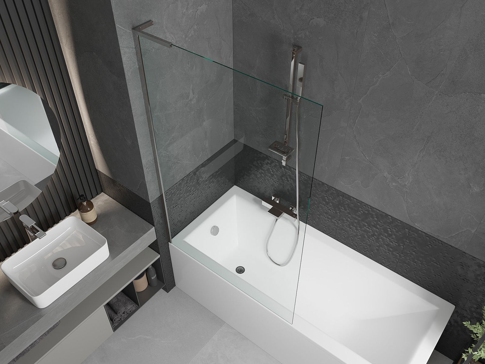 Protezione efficace contro la fuoriuscita d'acqua durante il bagno. Il paravento è dotato di guarnizioni che si adattano perfettamente alla superficie del vetro e al bordo della vasca. Una soluzione funzionale che garantisce sicurezza e facilita la pulizia.