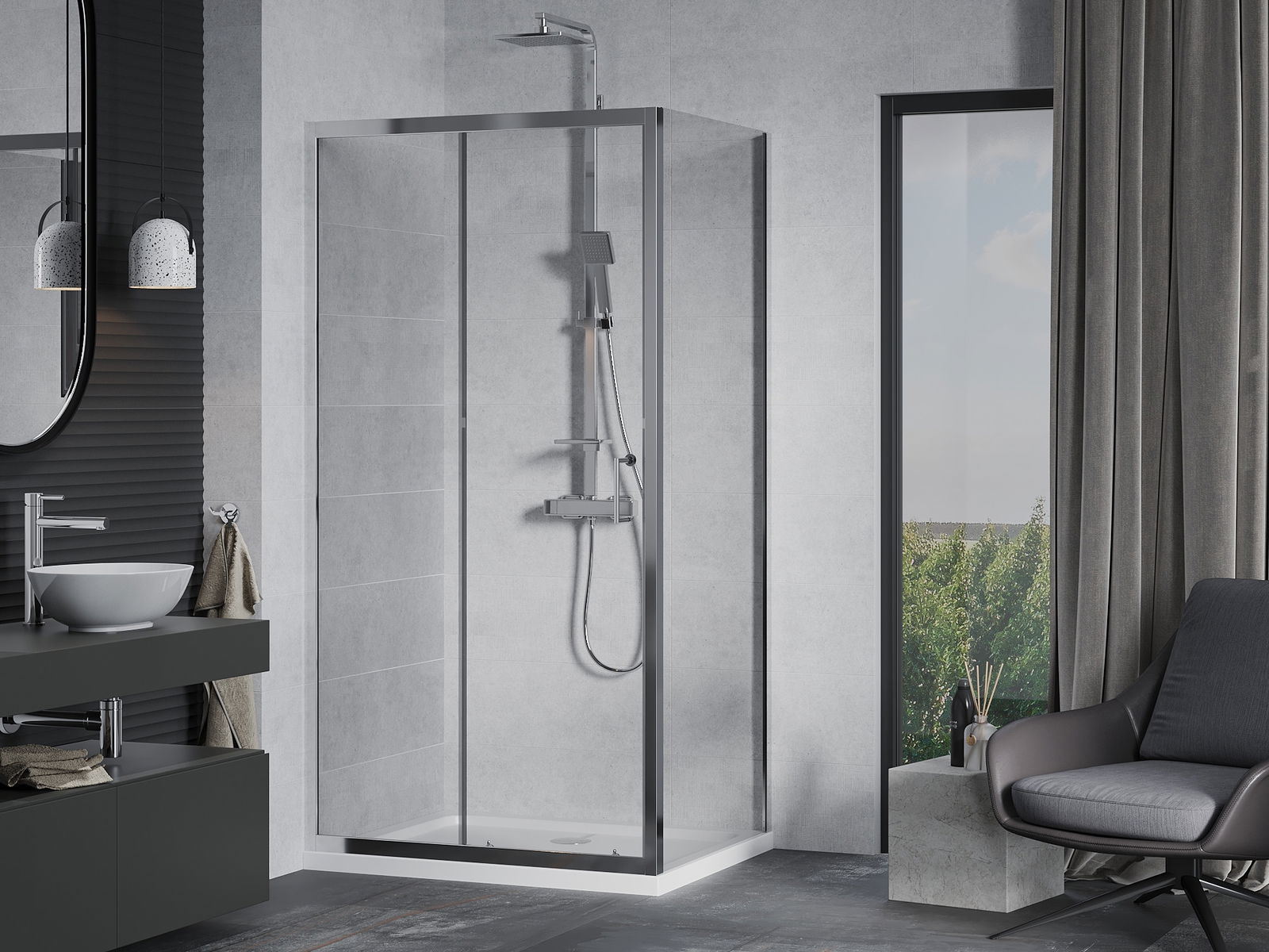L'impugnatura pratica e comoda è realizzata in metallo durevole e resistente. La forma alla moda combinata con una finitura abbinata al colore dei profili conferisce all'insieme un aspetto moderno e elegante, enfatizzando l'estetica di ogni bagno.