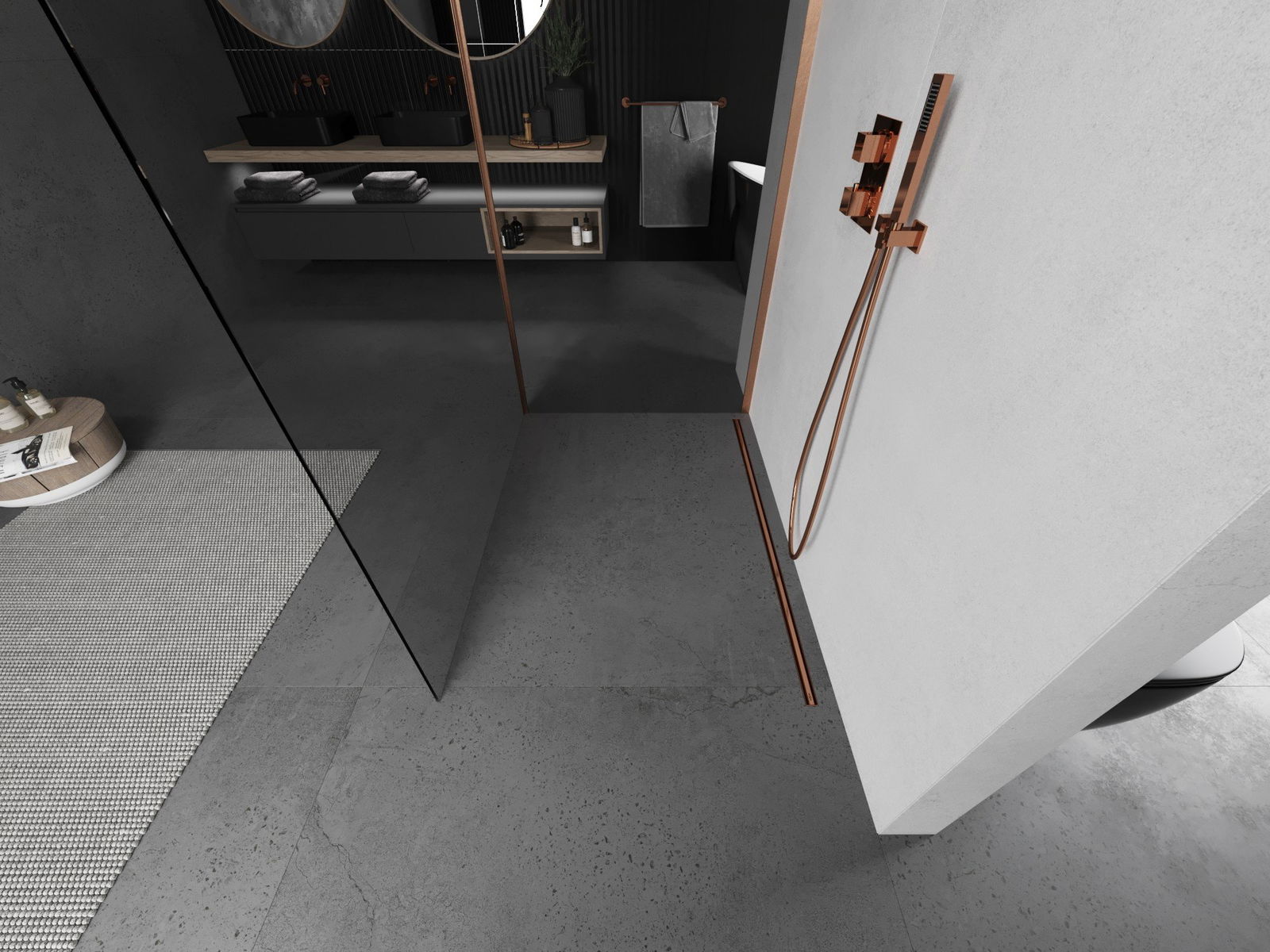 Mexen Kioto parete doccia Walk-in 140 x 115 cm, trasparente, rame spazzolato - 800-140-212-65-00-115