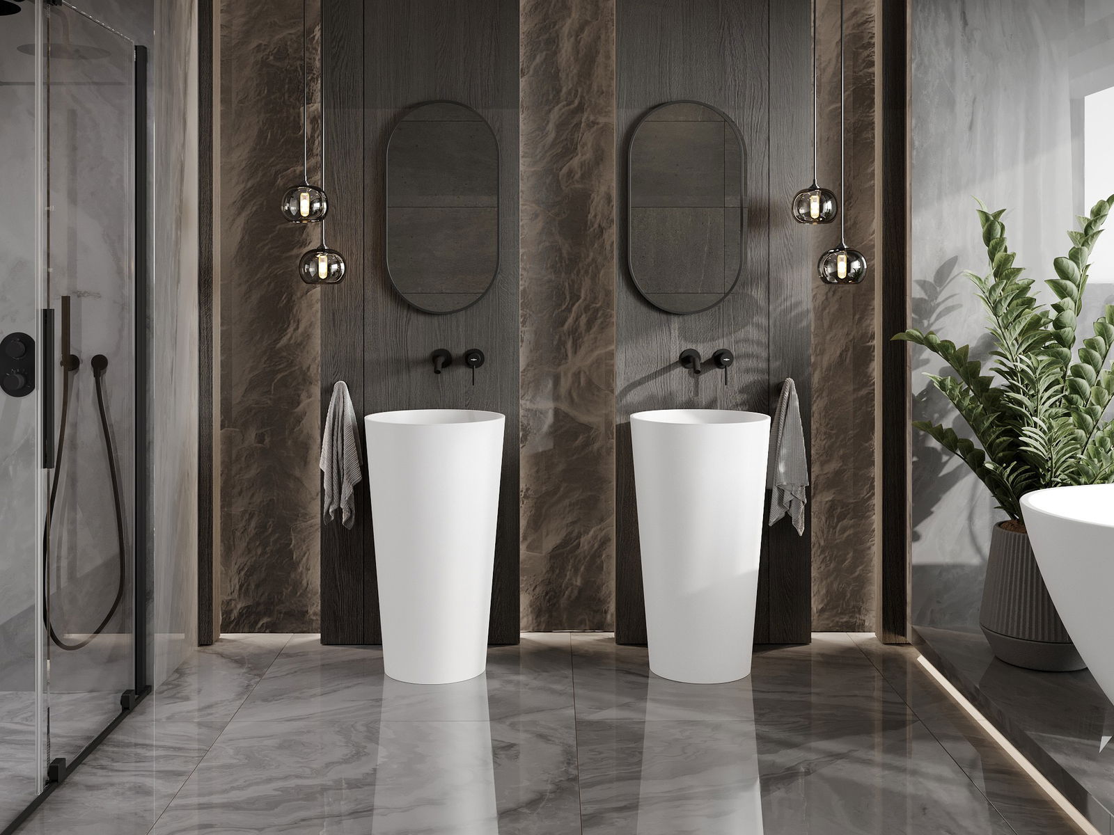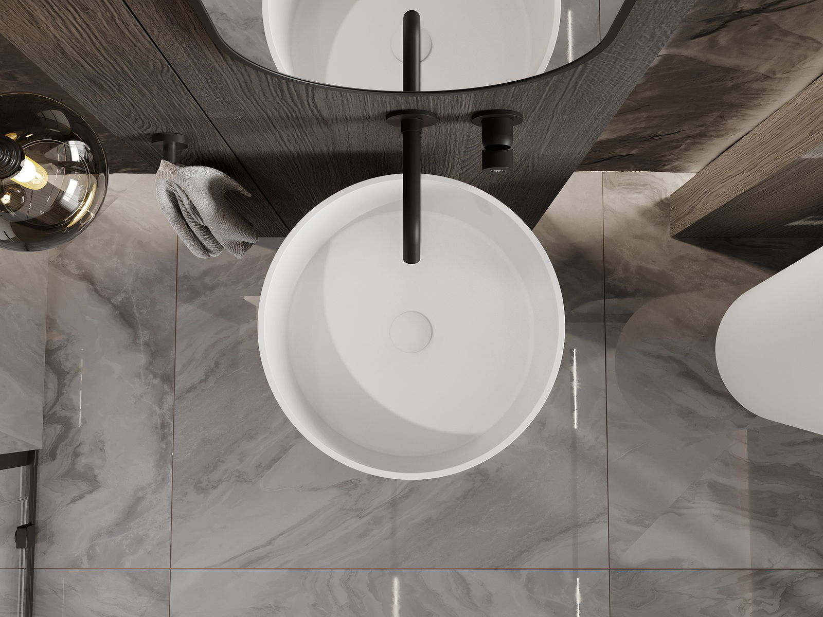 La superficie opaca della ceramica sottolinea perfettamente il carattere del colore del prodotto, conferendogli una finitura eccezionale e distintiva. La struttura sottile della ceramica opaca apporta eleganza al bagno, creando uno spazio estetico.