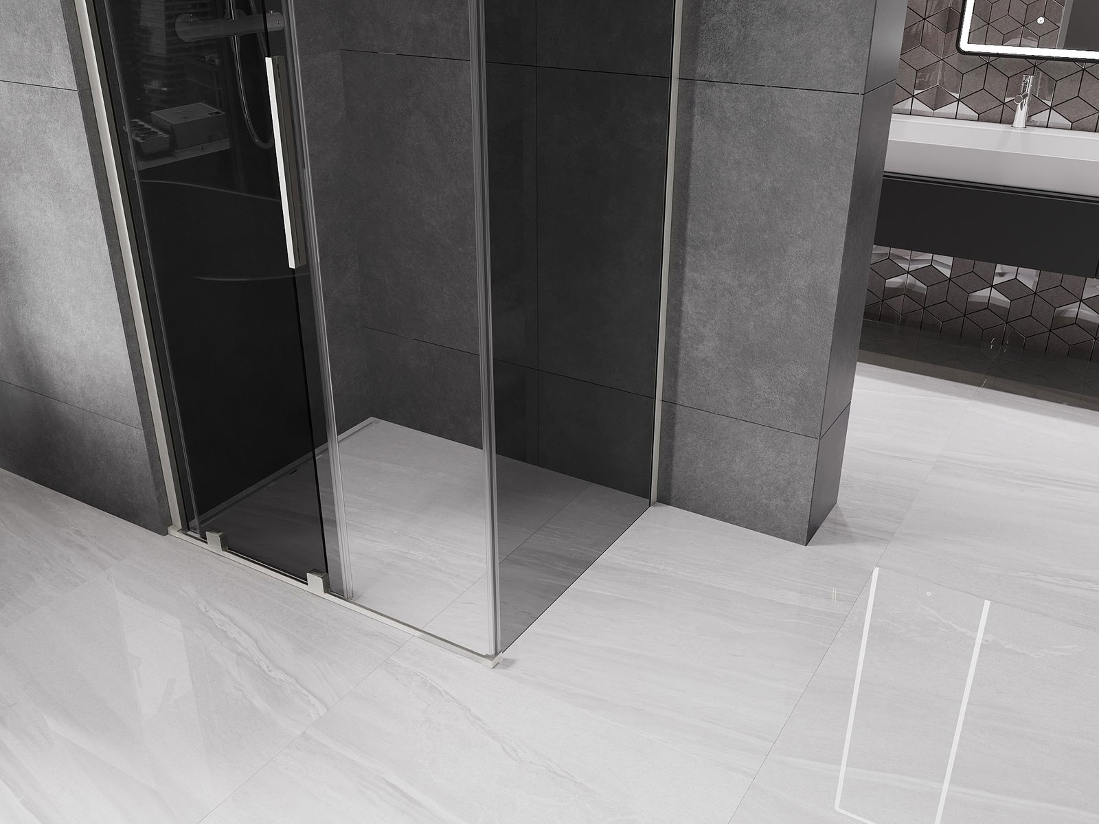 Grazie all'uso di un sistema di montaggio universale, le porte della doccia possono essere montate a destra o a sinistra, a seconda delle esigenze. In questo modo puoi progettare facilmente una doccia adatta allo spazio del bagno.