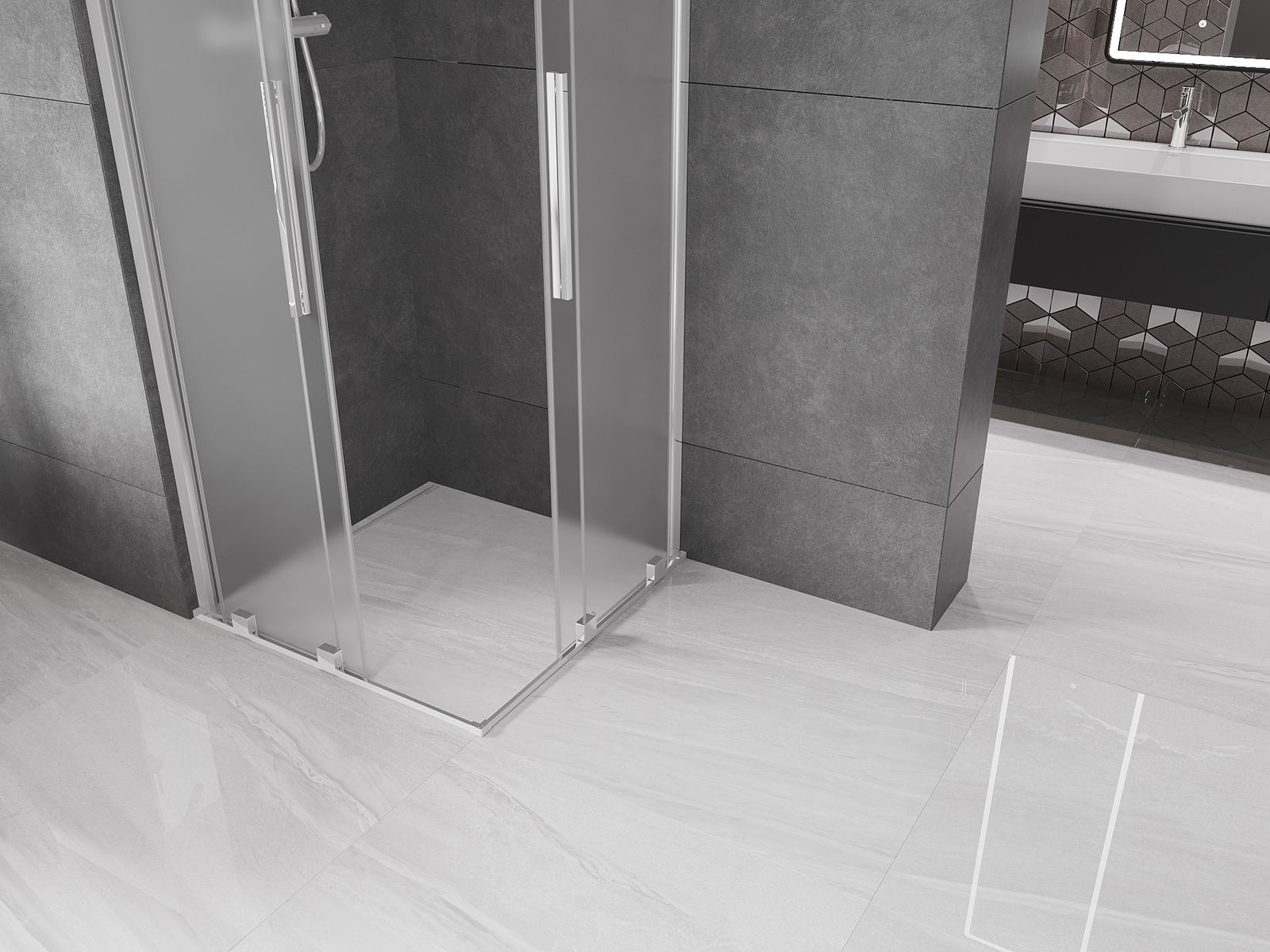 Il prodotto, a seconda delle esigenze, può essere installato sia sul piatto doccia che direttamente sul pavimento. Il metodo di installazione universale consente di adattare il prodotto a diversi tipi di bagni e configurazioni di spazio.