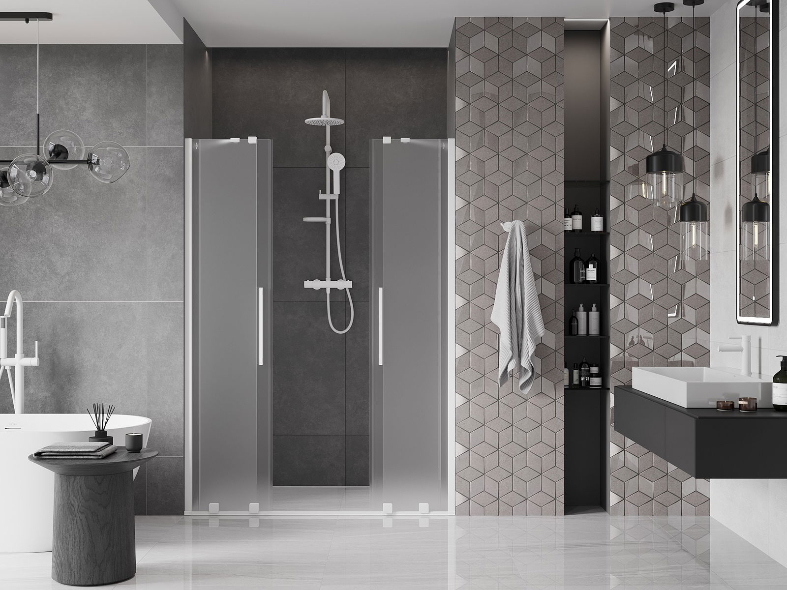 Mexen Velar Duo porta doccia scorrevole 140 cm, ghiacciato, bianco - 871-140-000-32-20