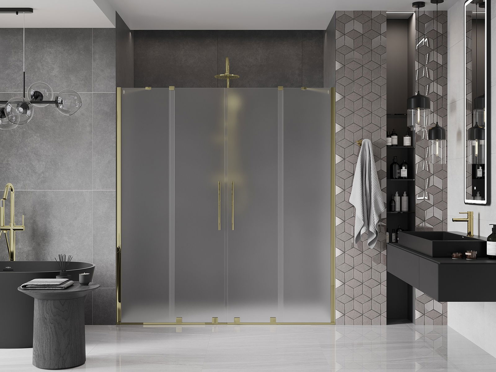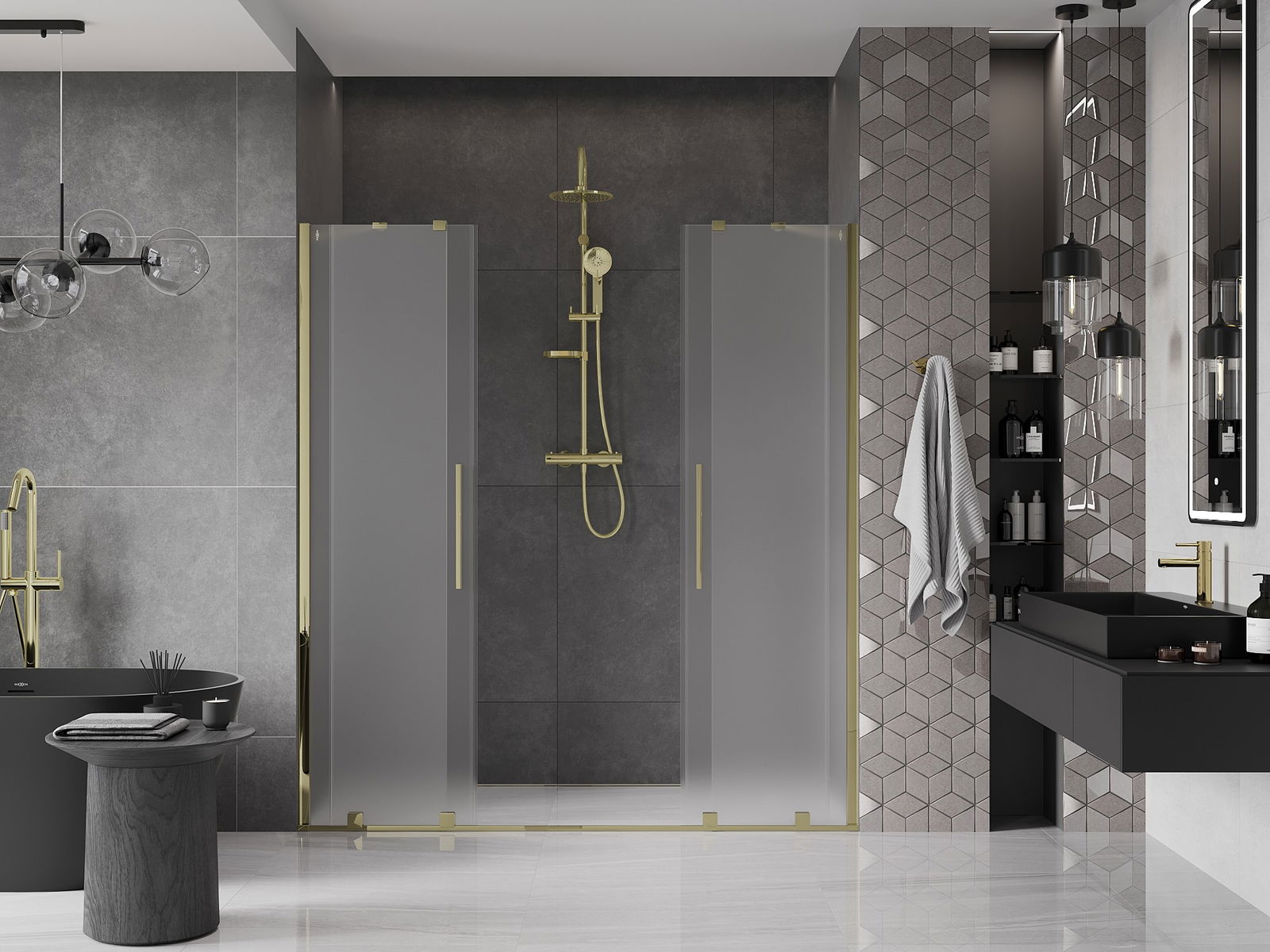 Mexen Velar Duo porta doccia scorrevole 200 cm, brina, oro - 871-200-000-32-50