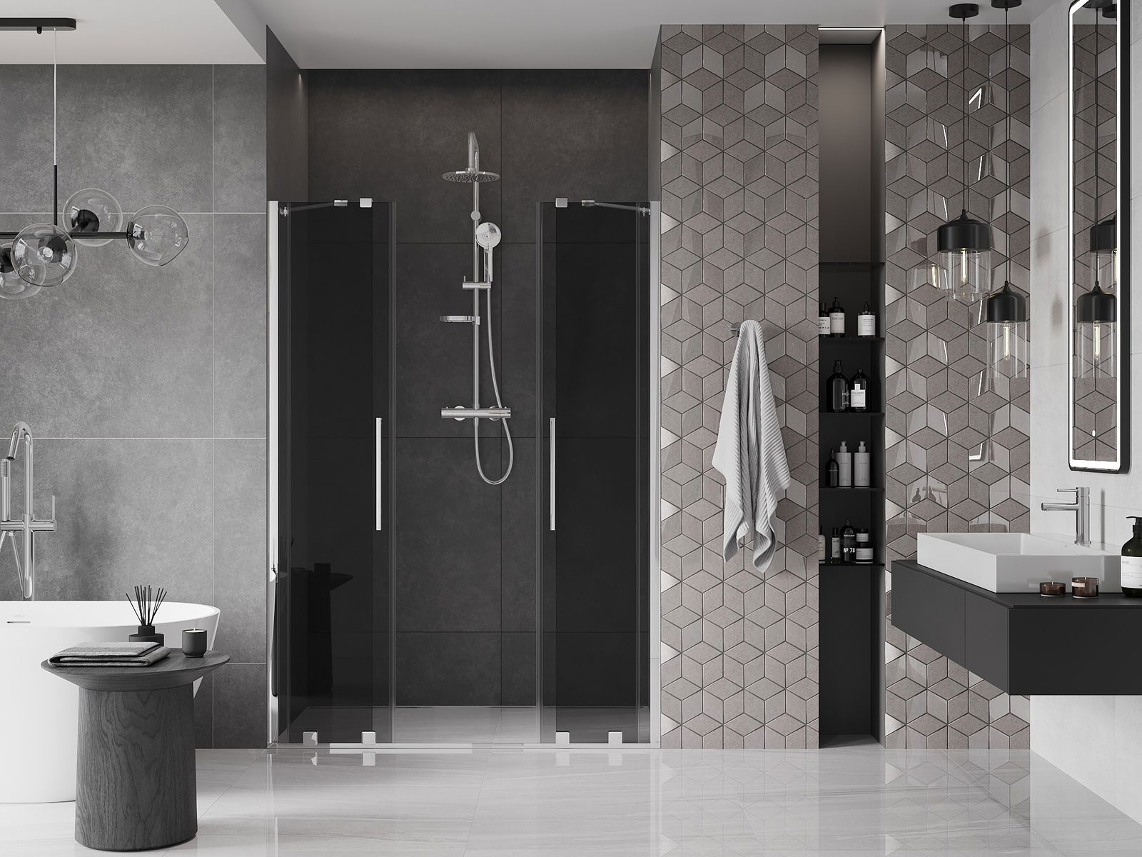 Mexen Velar Duo porta doccia scorrevole 160 cm, grafite, cromo - 871-160-000-42-01
