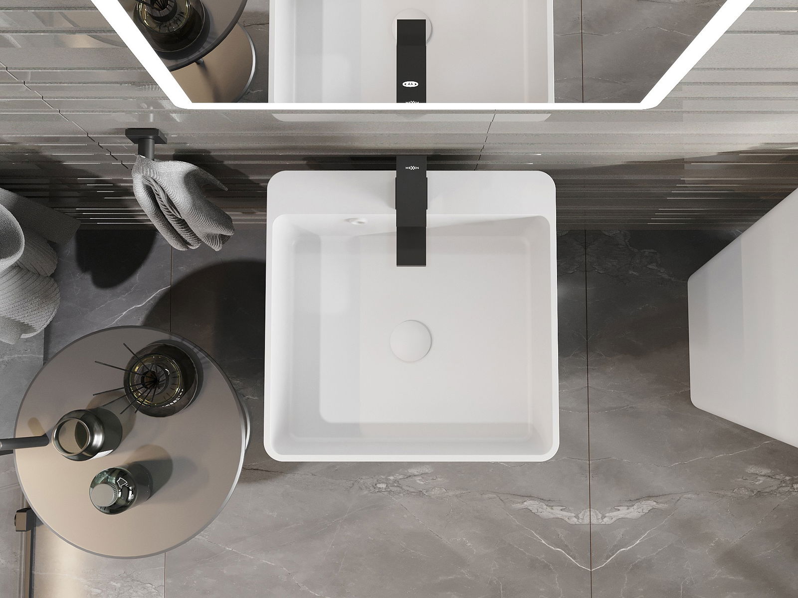 Il lavandino ha un foro dove possiamo installare il rubinetto. Ciò consente di risparmiare spazio prezioso nel bagno e di accentuarne l'estetica. Questa soluzione permette anche di mantenere più facilmente la pulizia intorno al lavandino.