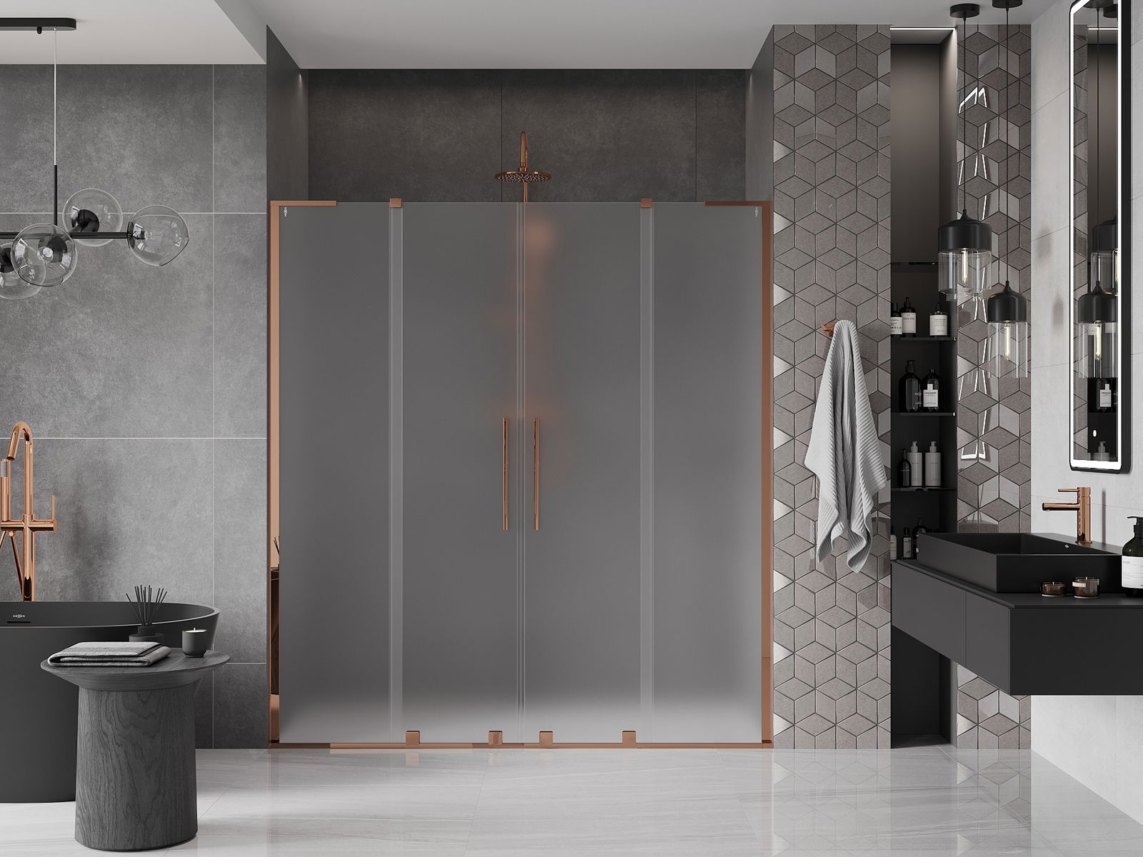 Mexen Velar L Duo porte doccia scorrevoli 170 cm, smerigliato, oro rosa - 871-170-003-32-60