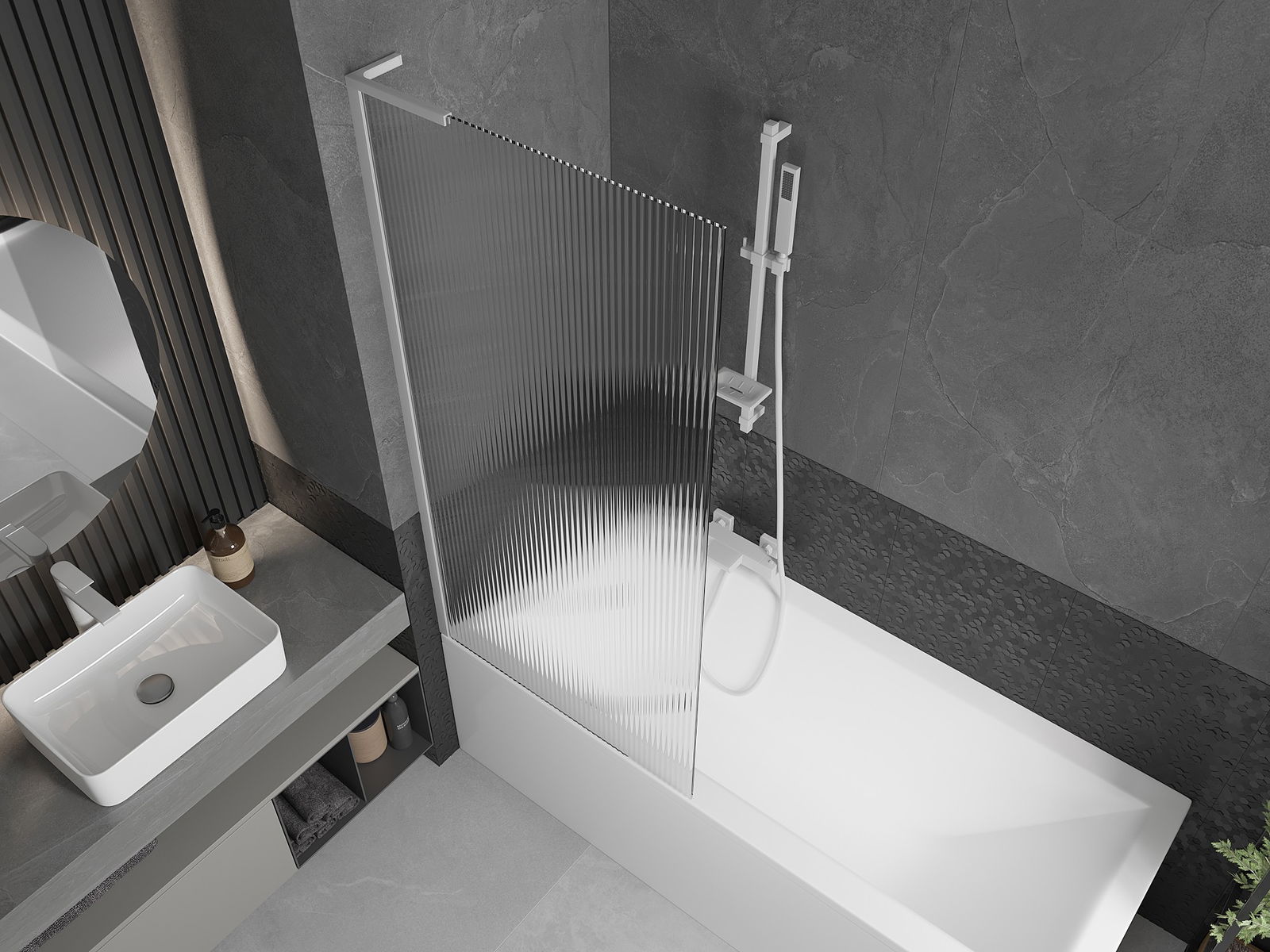 Mexen Next L paravento per vasca da bagno ad anta singola 80 x 150 cm, strisce, bianco - 895-080-000-03-09-20