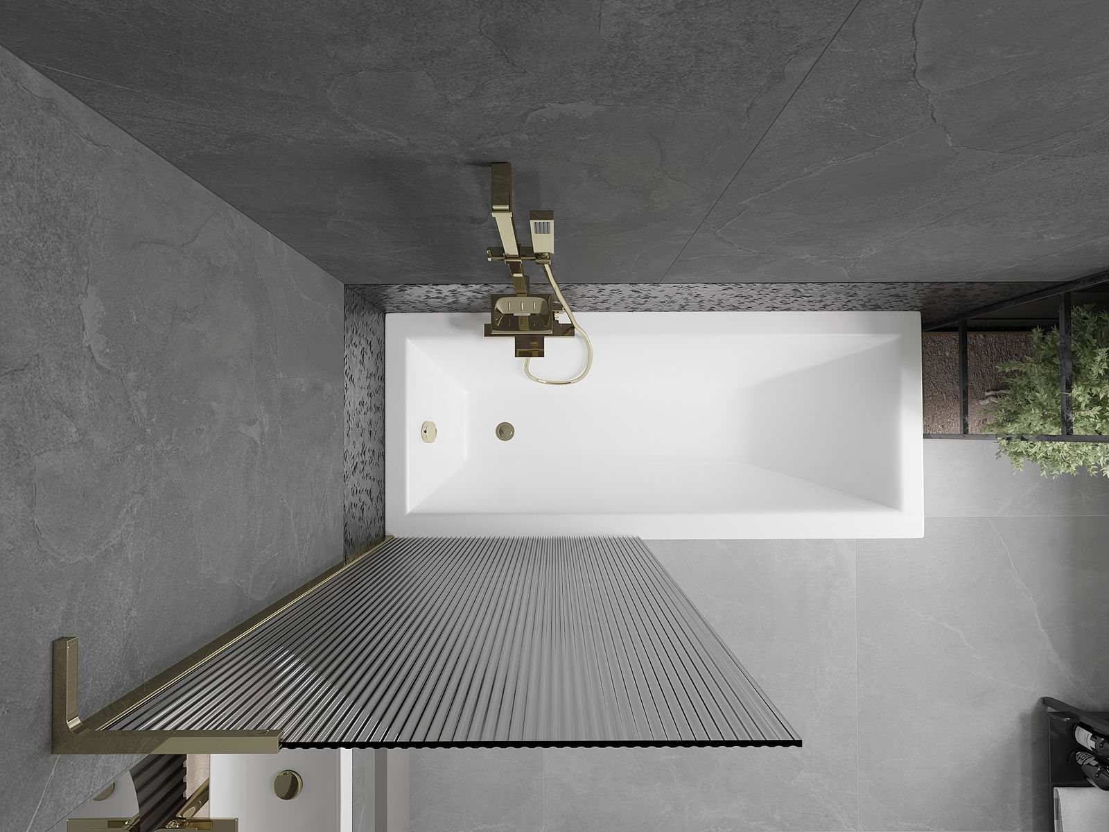 Mexen Next L paratia per vasca da bagno a 1 anta 80 x 150 cm, strisce, oro - 895-080-000-03-09-50