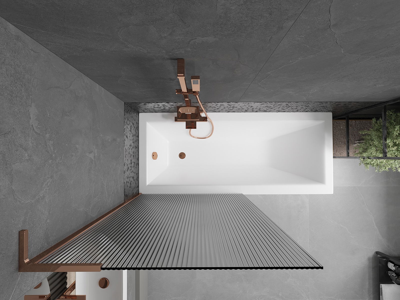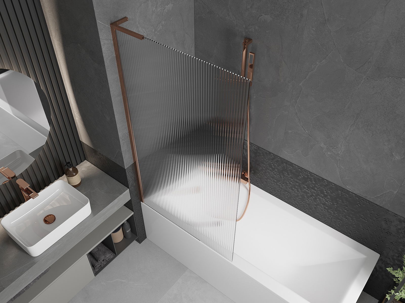 Mexen Next L paratia per vasca da bagno a 1 anta 90 x 150 cm, strisce, oro rosa - 895-090-000-03-09-60