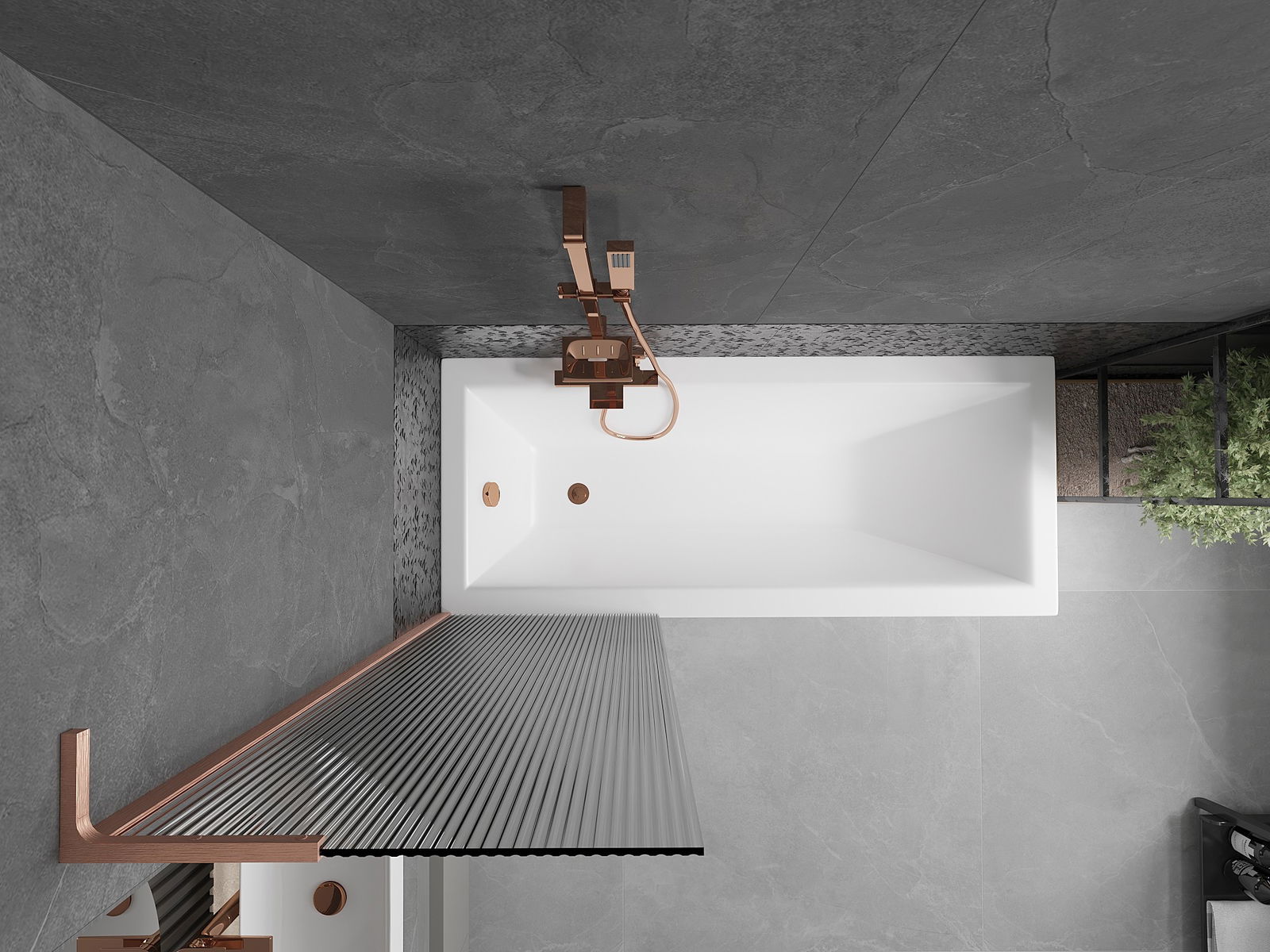 Mexen Next L paravento per vasca da bagno a 1 anta 60 x 150 cm, a righe, rame spazzolato - 895-060-000-03-09-65