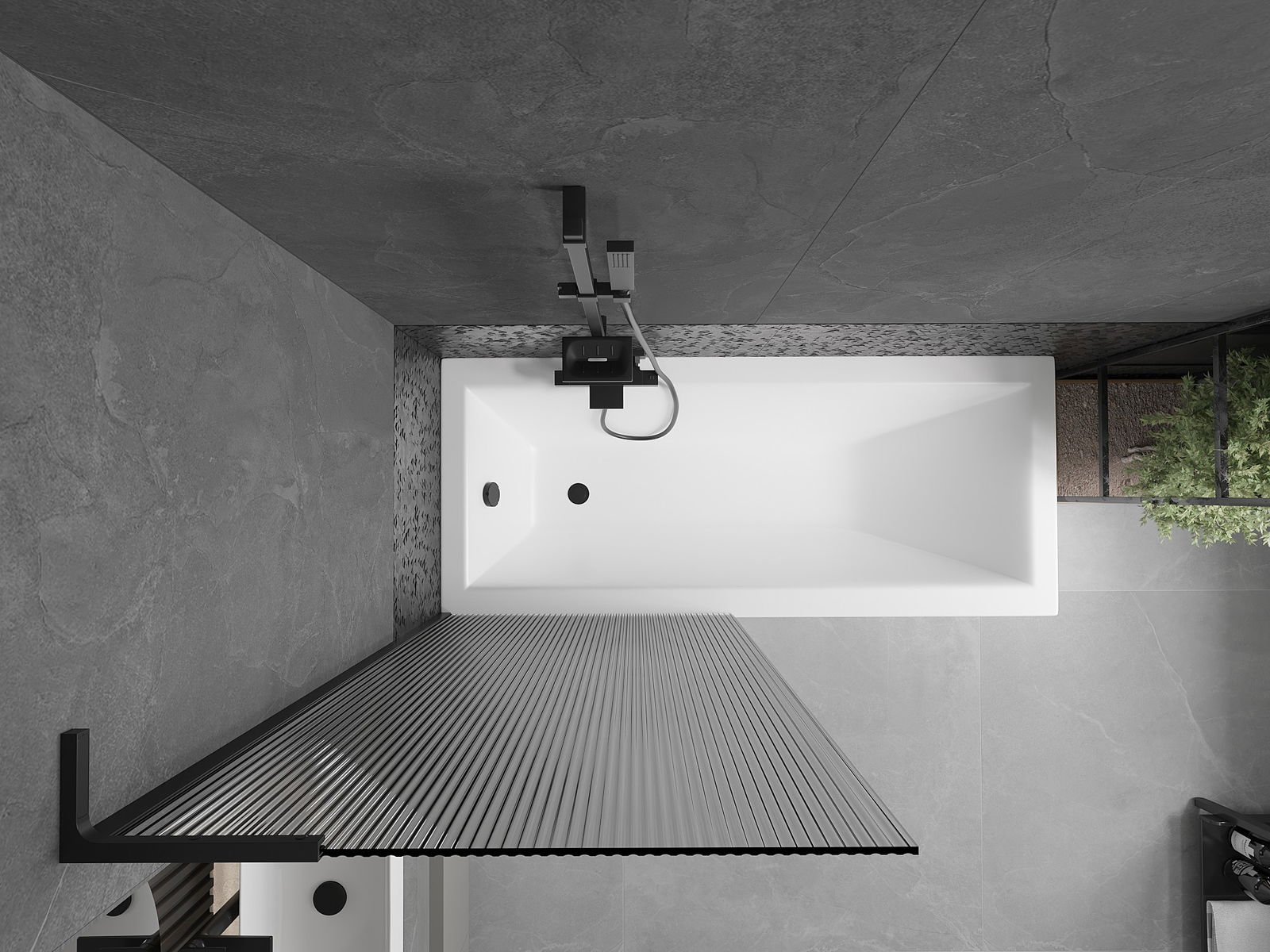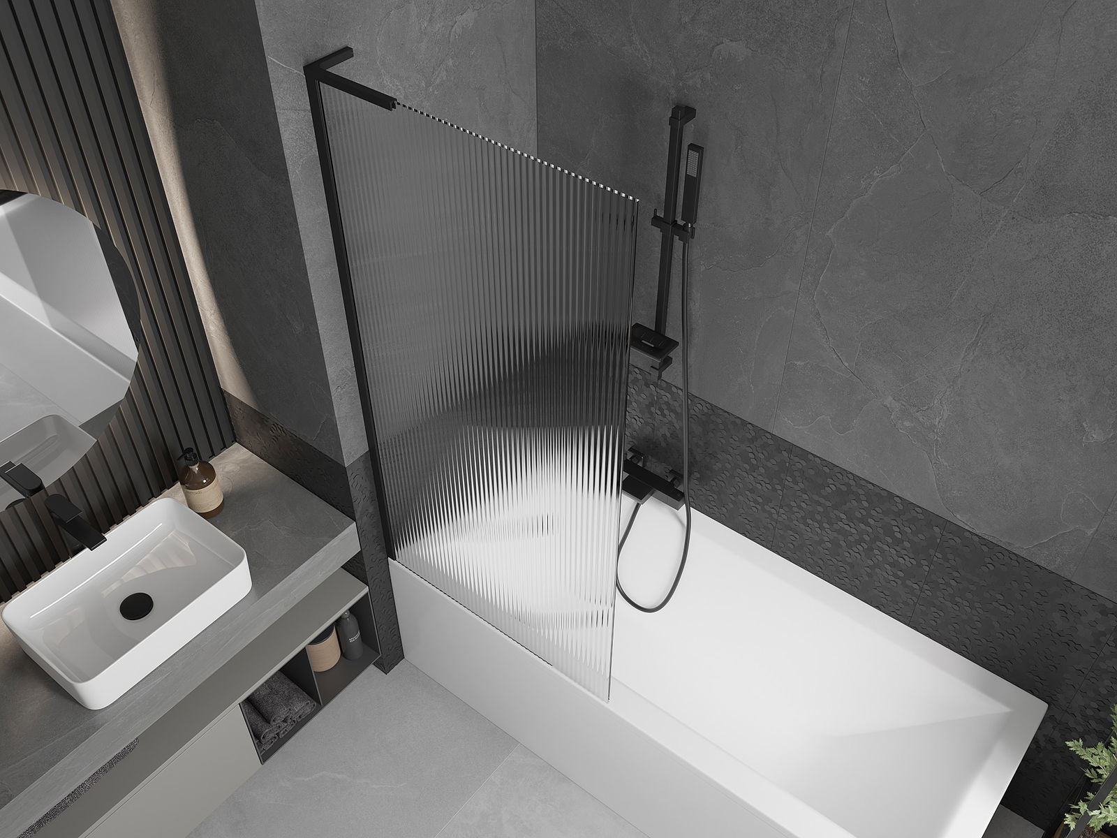 Mexen Next L paratia per vasca da bagno a 1 anta 80 x 150 cm, righe, nero - 895-080-000-03-09-70