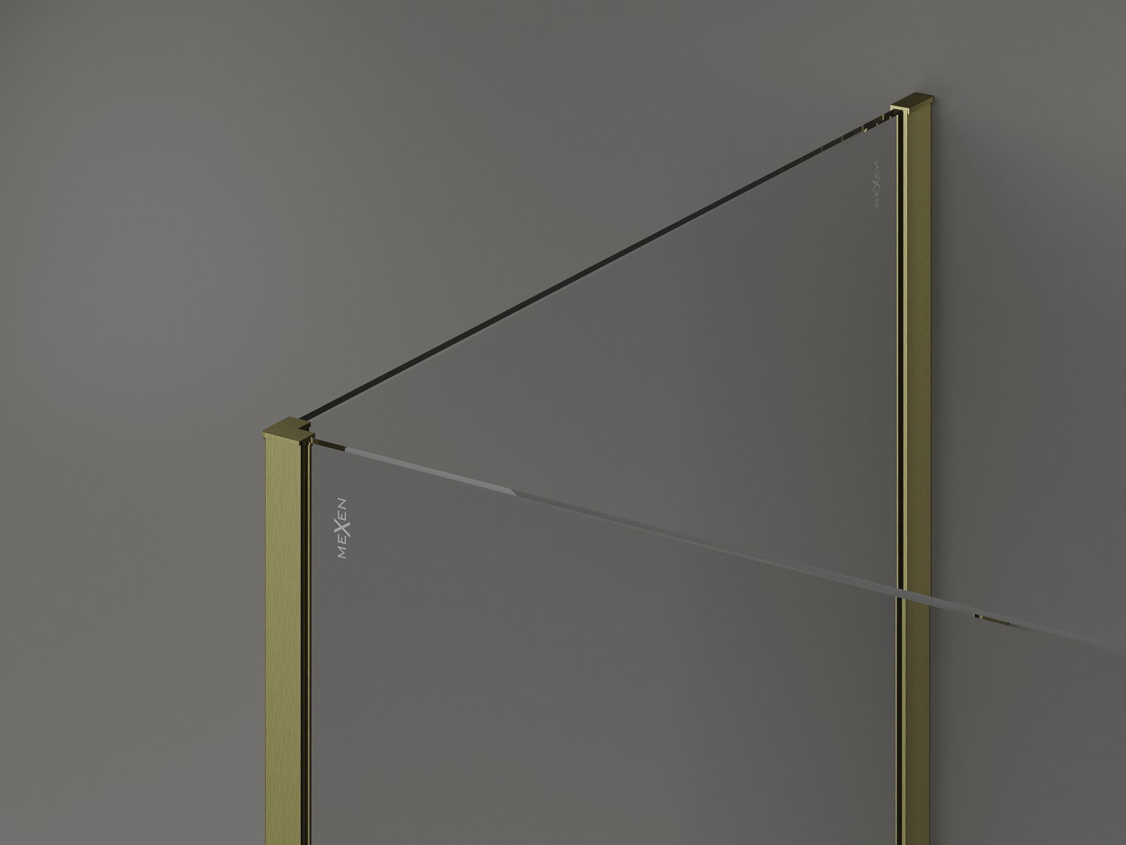 Mexen Kioto parete doccia Walk-in 140 x 90 x 40 cm, cornice nera, oro spazzolato - 800-140-090-221-55-70-040