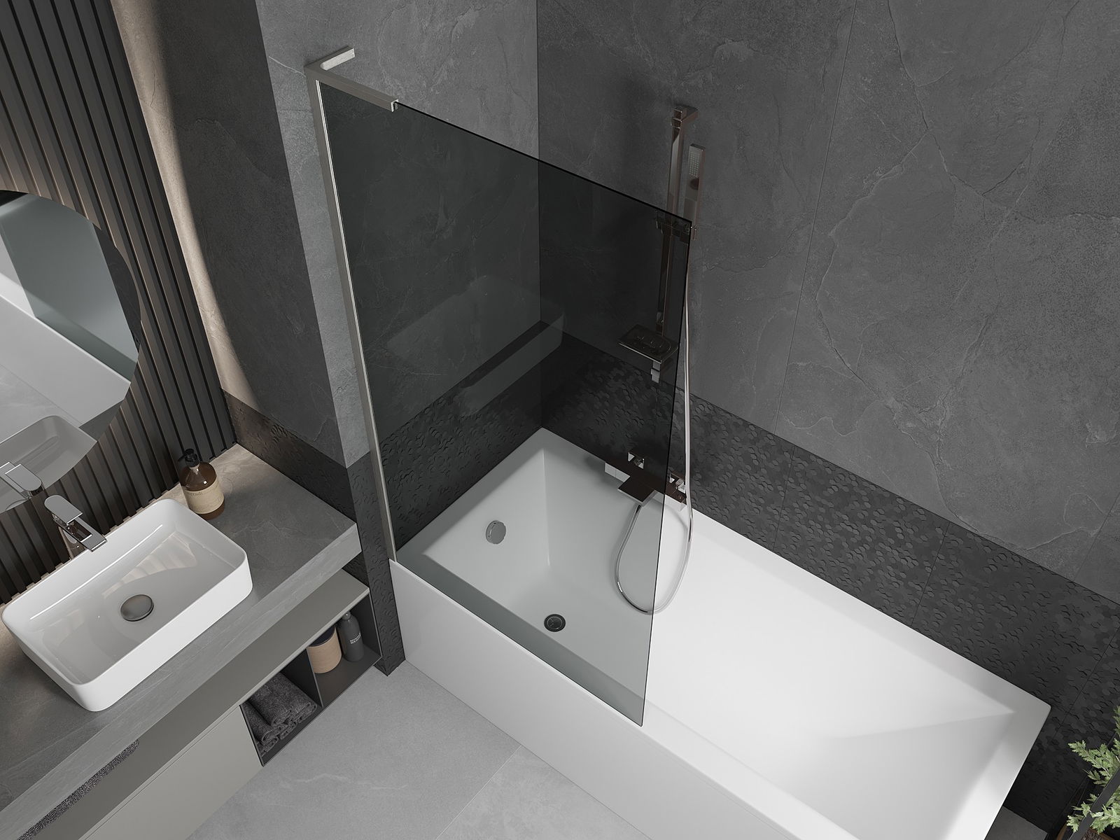 Mexen Next L paravento da bagno con 1 anta 90 x 150 cm, grafite, nichel spazzolato - 895-090-000-03-40-97