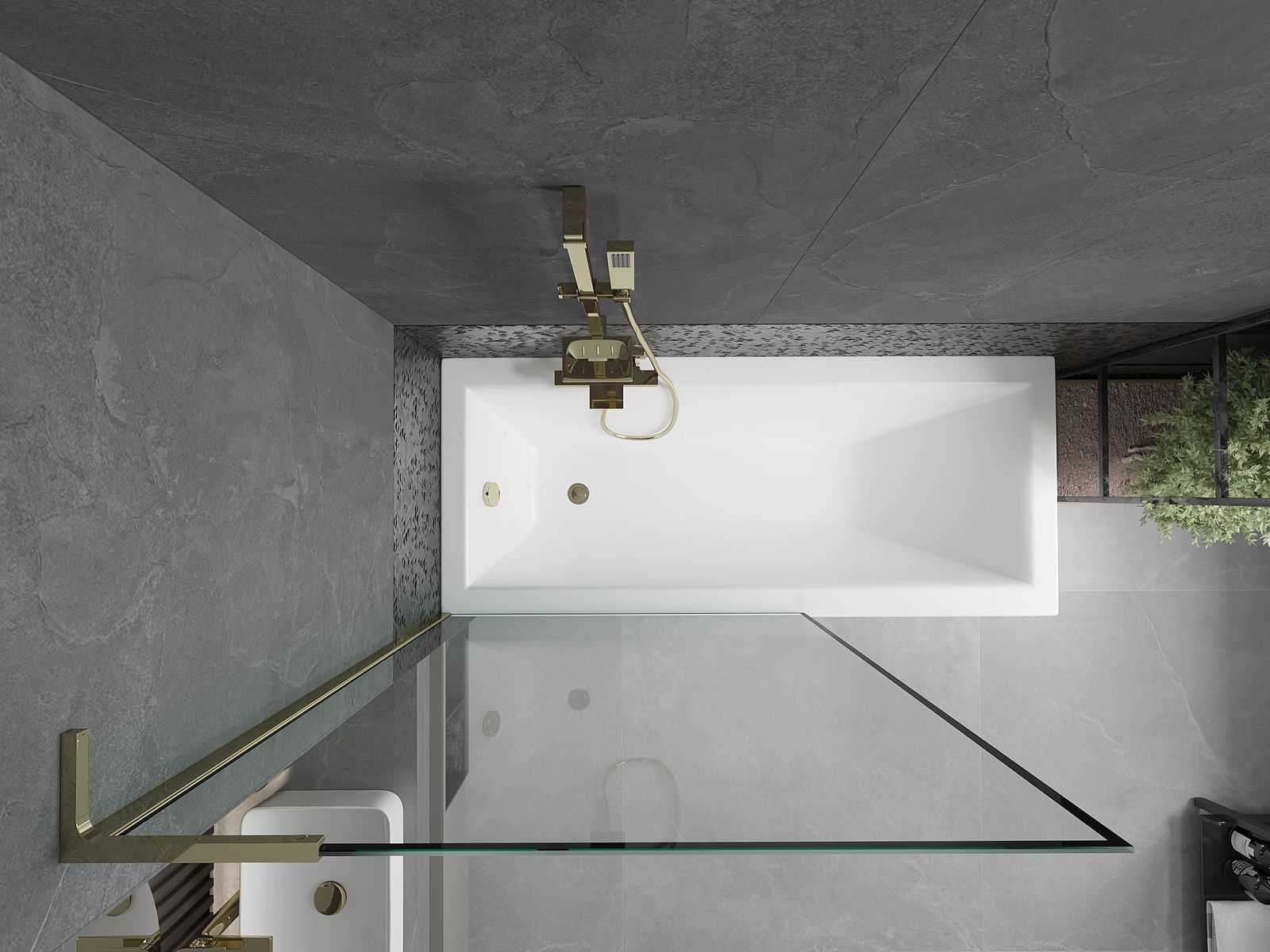Mexen Next L paratia per vasca da bagno a 1 anta 100 x 150 cm, cornice nera, dorato - 895-100-000-03-70-50