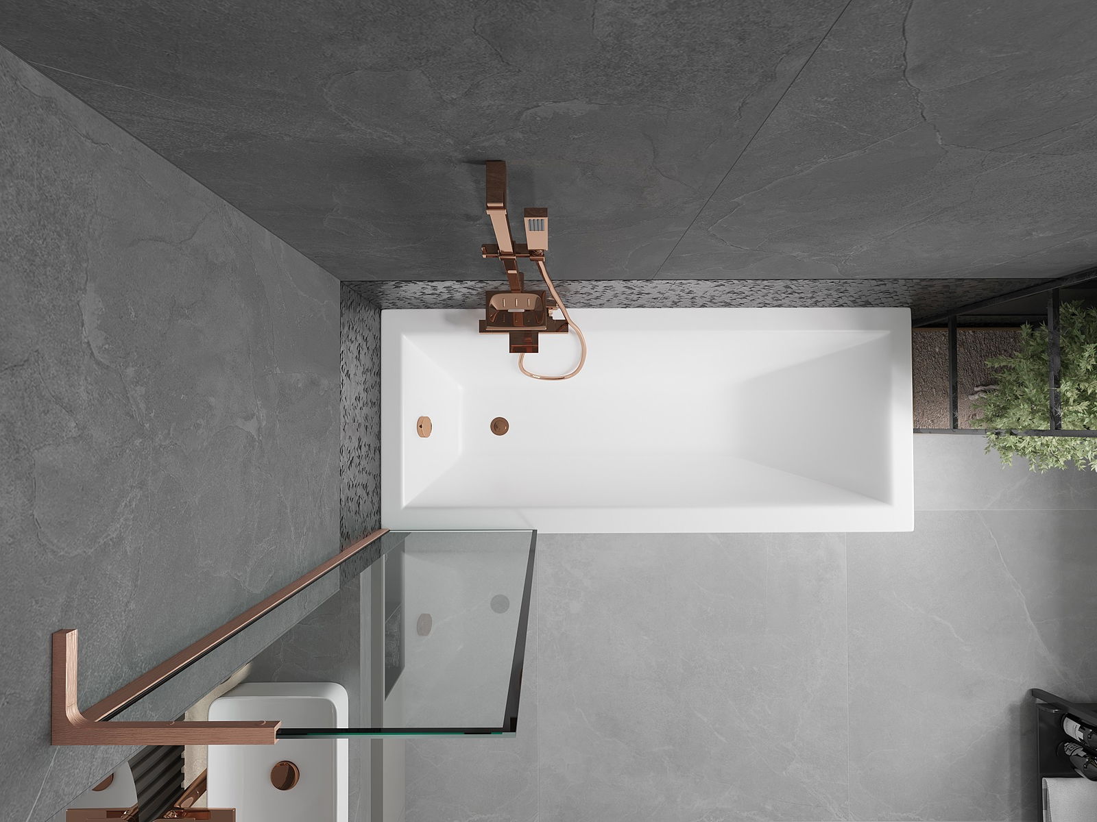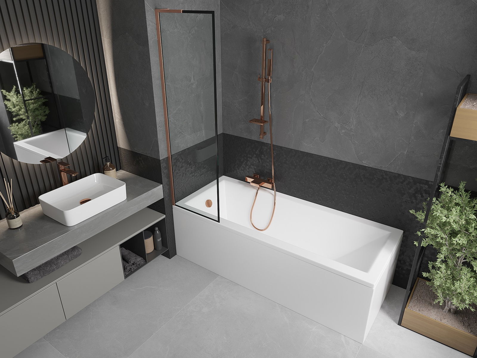 Mexen Next L paratia di vasca da bagno a 1 anta 50 x 150 cm, cornice nera, rame spazzolato - 895-050-000-03-70-65