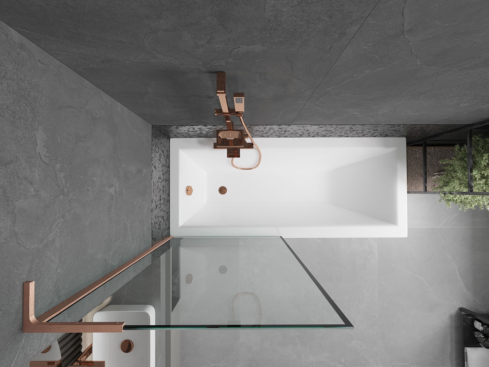 Mexen Next L paravento per vasca 1-anta 80 x 150 cm, cornice nera, rame spazzolato - 895-080-000-03-70-65