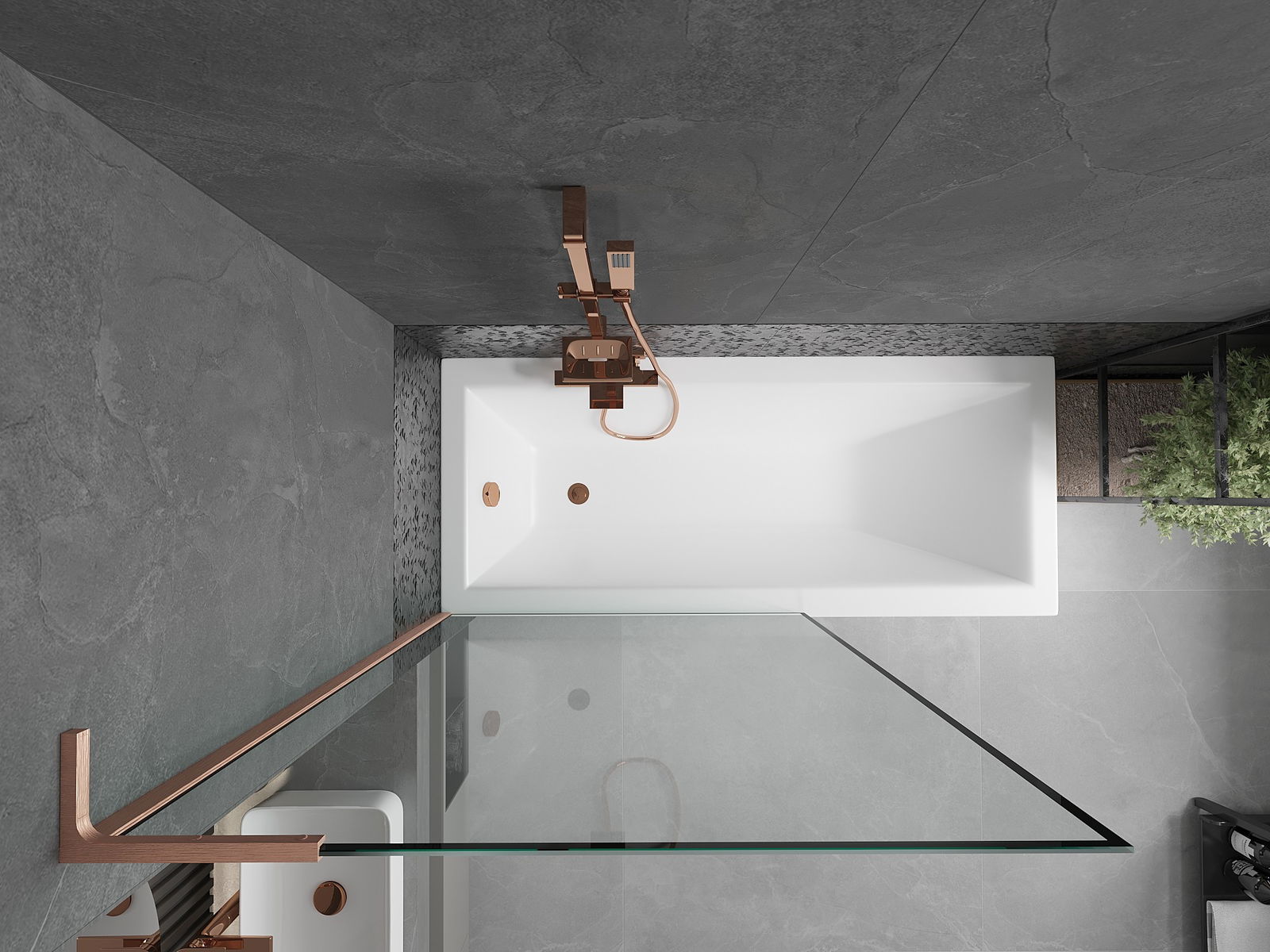 Mexen Next L paratia per vasca da bagno a 1 anta 100 x 150 cm, cornice nera, rame spazzolato - 895-100-000-03-70-65