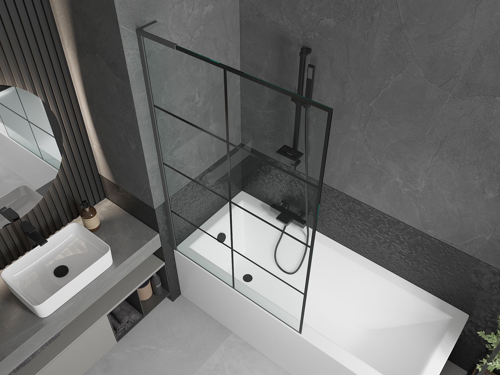 Mexen Next L paratia per vasca da bagno 1 anta 100 x 150 cm, rete nera, metallo canna di fucile - 895-100-000-03-77-95
