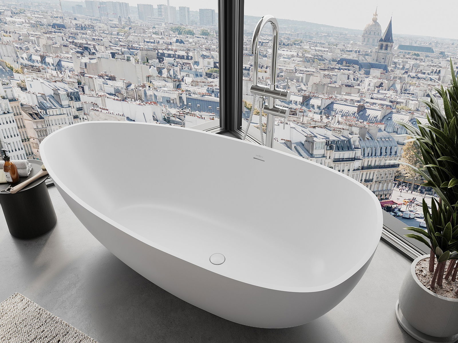 La superficie opaca evidenzia perfettamente il carattere del colore del prodotto, conferendogli una finitura unica e distintiva. La sottile struttura della vasca opaca porta eleganza al bagno, creando uno spazio estetico.