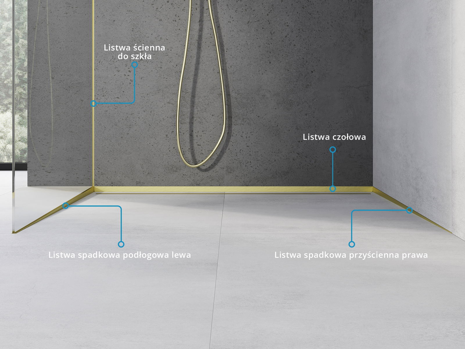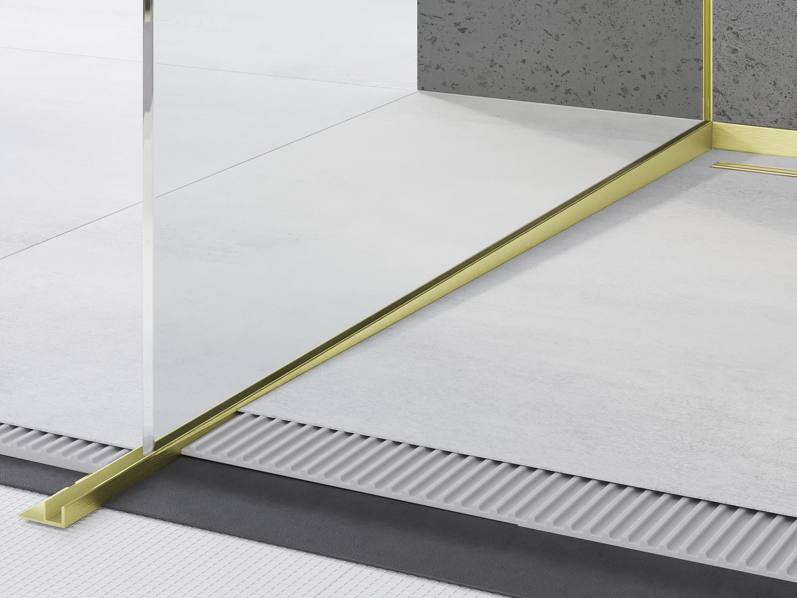 Il listello ha uno spazio per il montaggio del vetro della doccia, che non solo facilita il processo di installazione, ma consente anche di nascondere la finitura con il silicone