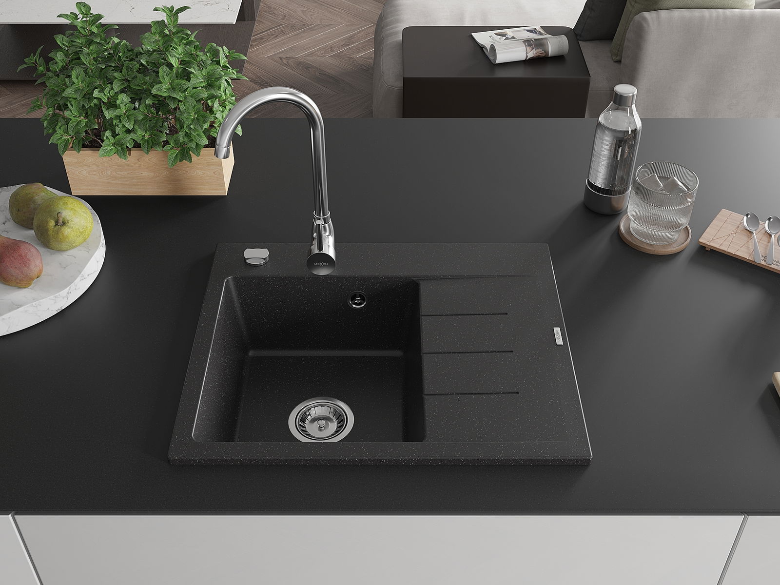 Il lavello è realizzato in granito di alta qualità. Rappresenta un complemento elegante e, soprattutto, pratico per ogni cucina, indipendentemente dal suo stile. L'alta qualità e la durata del granito garantiscono un utilizzo che dura per molti anni.
