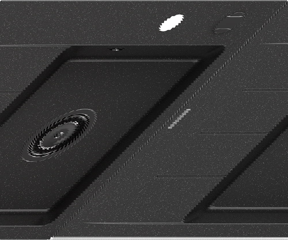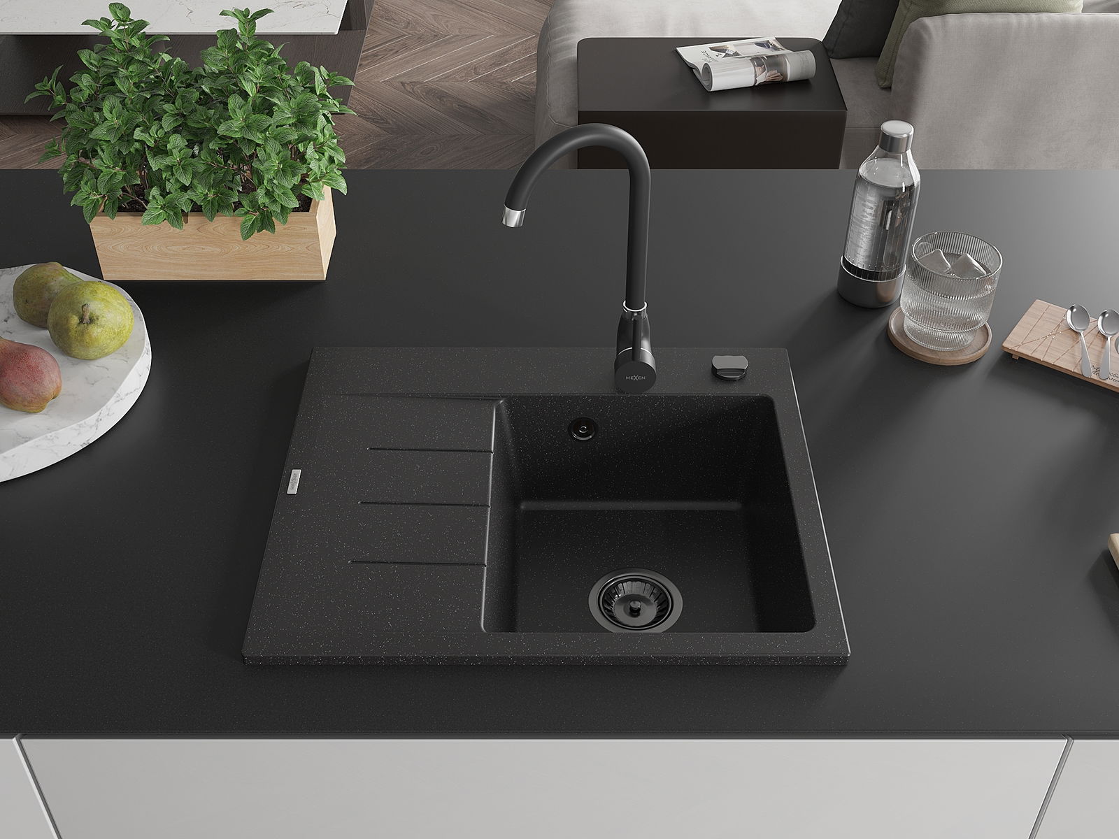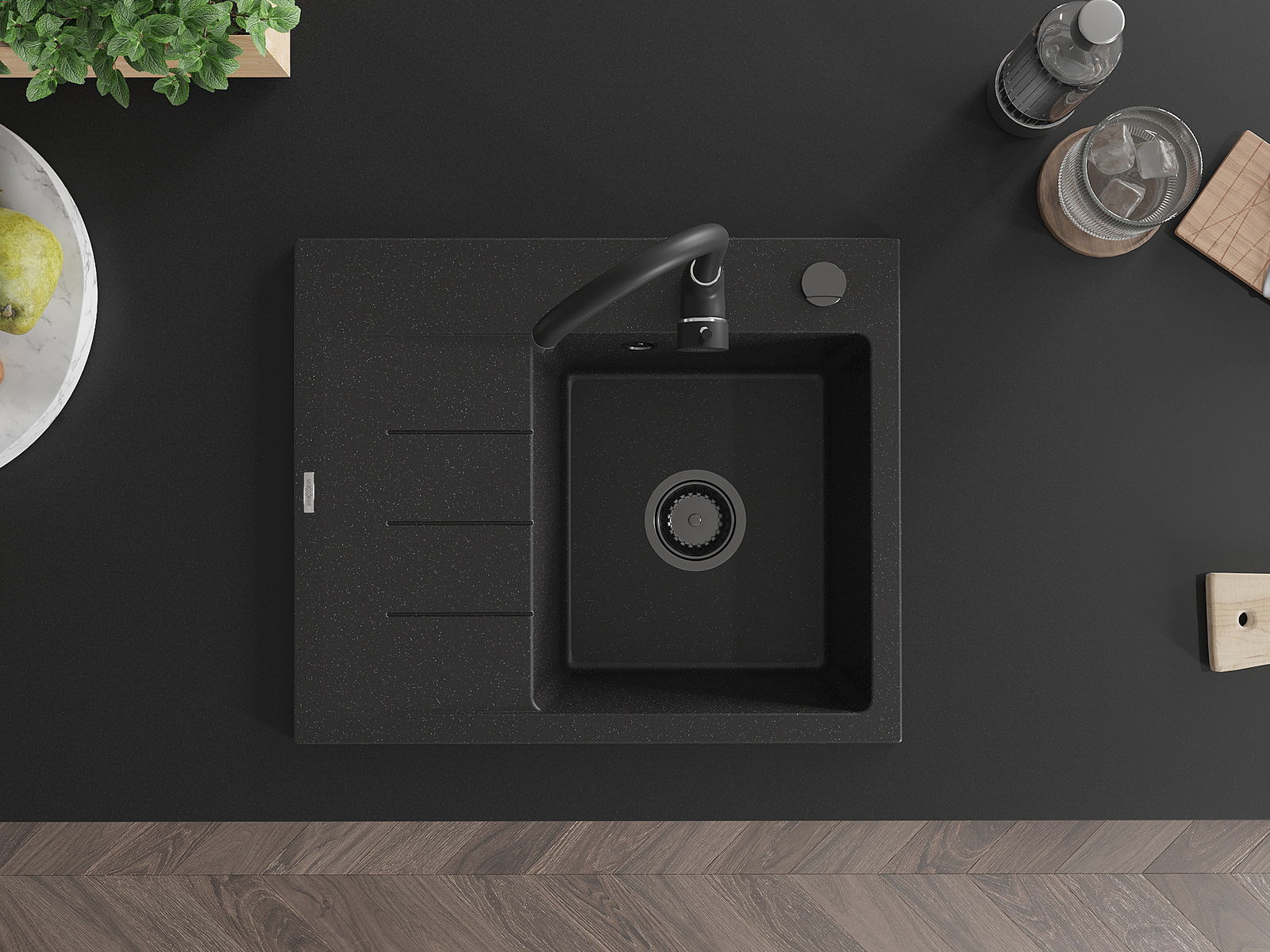Mexen Ben lavello in granito a 1 vasca con sgocciolatoio, destro 600x500 mm, nero/argento metallico sifone nero