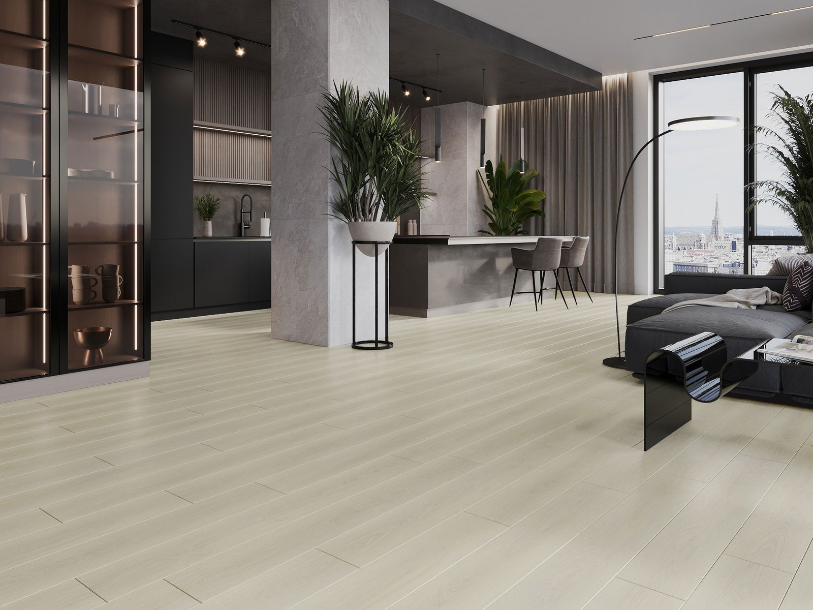 I pannelli hanno una fuga a 4 lati - ogni lato è stato fresato in modo tale che, una volta posati, creino un collegamento a forma di V. Questo design rende la struttura del pavimento più chiara, conferendo al pavimento maggiore profondità e un carattere estetico. Questo effetto è particolarmente apprezzato nelle moderne disposizioni, dove i dettagli sottolineano l'aspetto eccezionale degli interni.