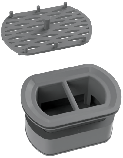 Sistema che rende la pulizia del sifone ancora più facile e veloce. Basta rimuovere l'elemento superiore mobile, eliminare le impurità e risciacquarlo sotto l'acqua. Supporto ideale per mantenere igiene e pulizia in bagno.
