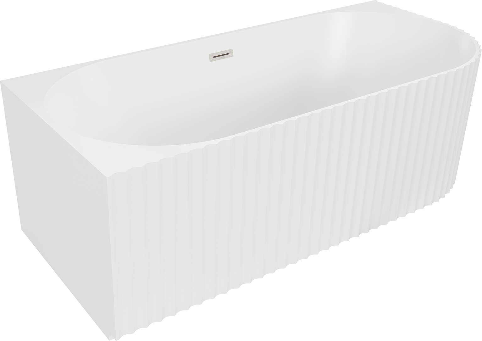 Mexen Gia vasca da bagno freestanding angolare zigrinata sinistra 150 x 75 cm, bianco opaco, troppopieno in nichel spazzolato