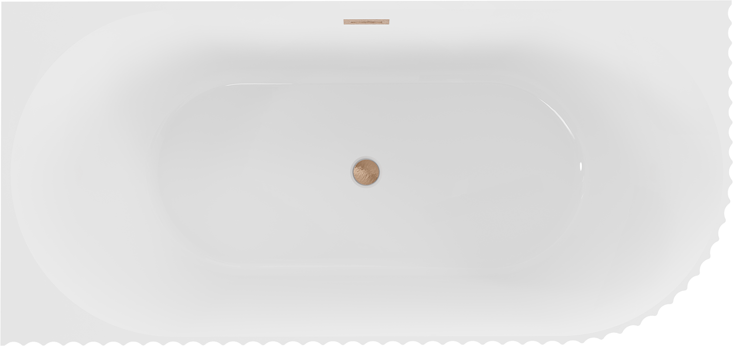 Mexen Gia vasca da bagno angolare freestanding con scanalature sinistra 170 x 80 cm, bianco lucido, troppo pieno rame spazzolato