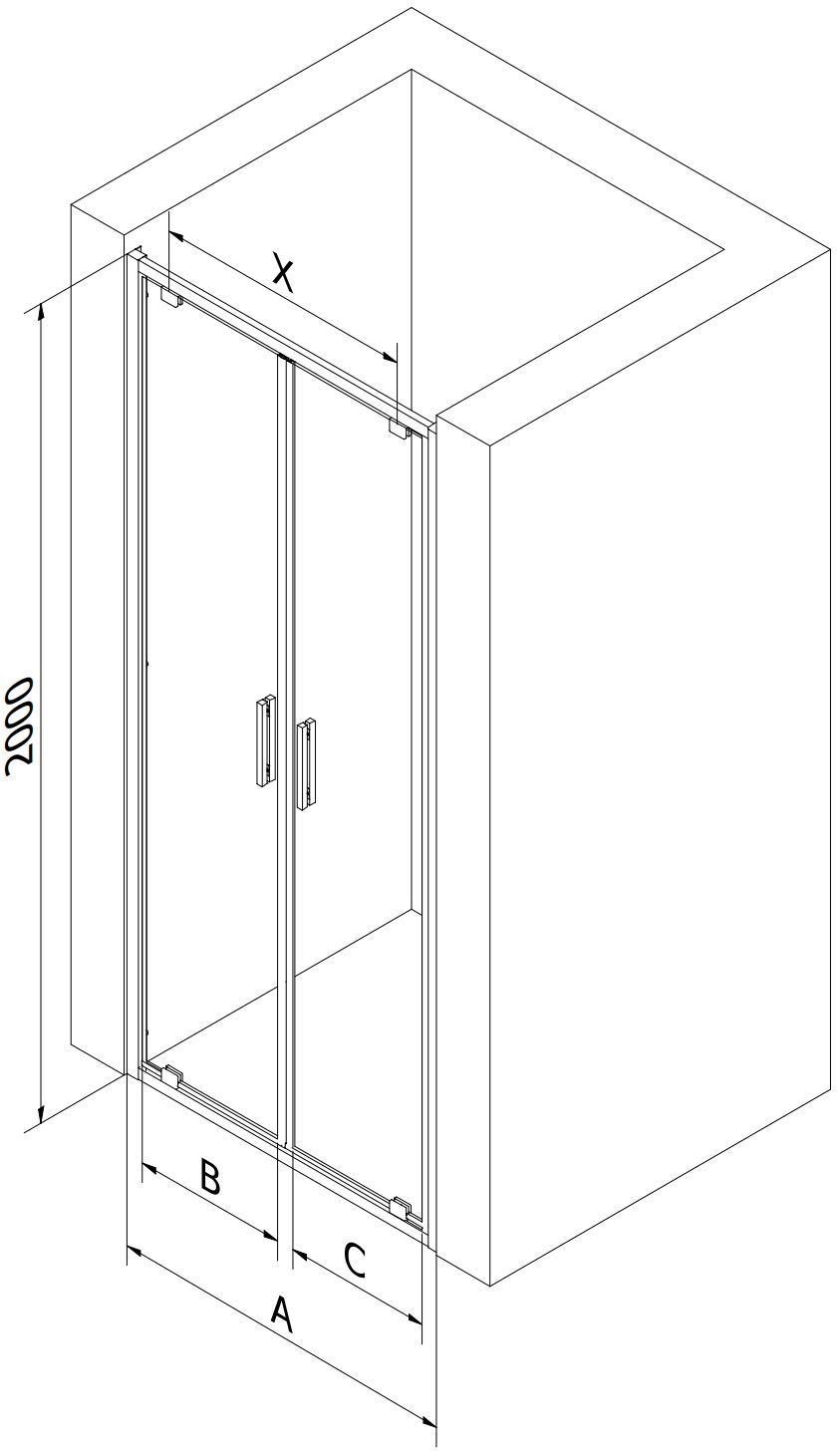 Grazie all'uso di un sistema di montaggio universale, le porte della doccia possono essere montate a destra o a sinistra, a seconda delle esigenze. In questo modo puoi progettare facilmente una doccia adatta allo spazio del bagno.