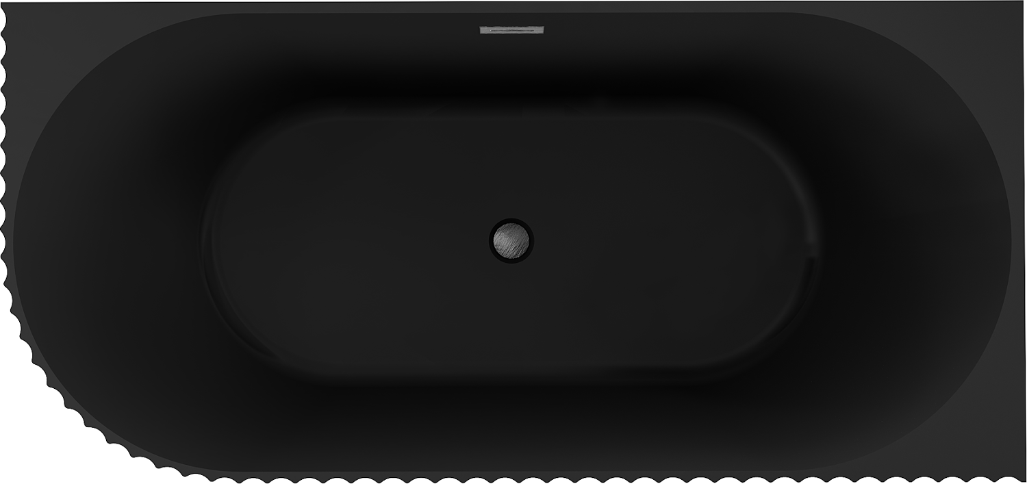 Mexen Gia vasca da bagno angolare indipendente con scanalature destra 150 x 75 cm, nera opaca, troppo pieno grigio canna di