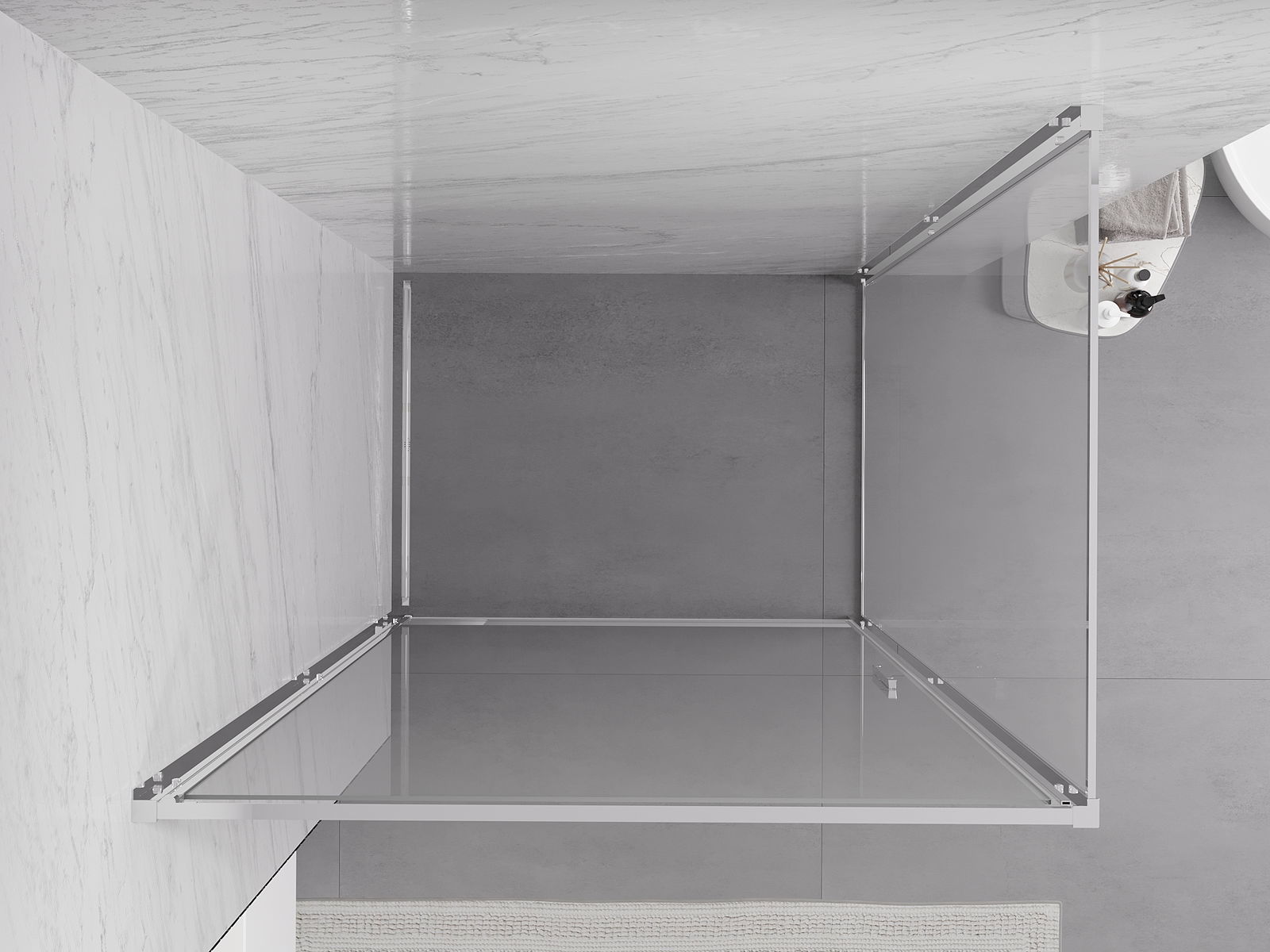 Il prodotto, a seconda delle esigenze, può essere installato sia sul piatto doccia che direttamente sul pavimento. Il metodo di installazione universale consente di adattare il prodotto a diversi tipi di bagni e configurazioni di spazio.