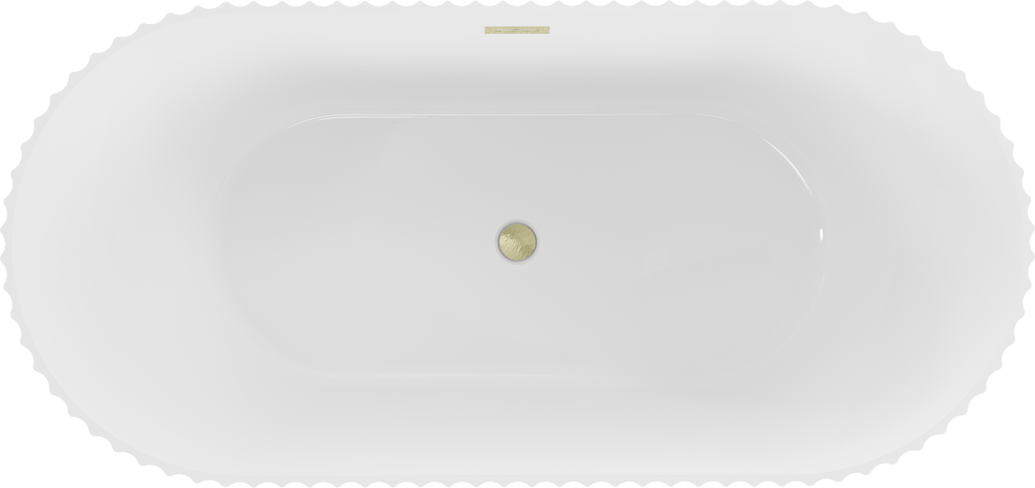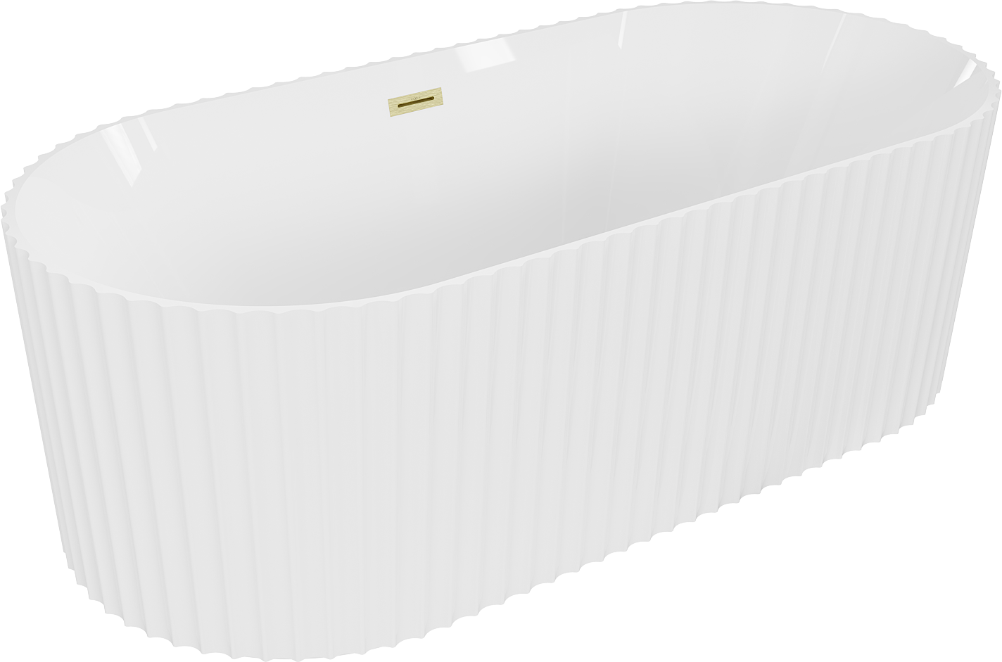 Mexen Paola vasca da bagno autoportante scanalata 150 x 75 cm, bianco lucido, troppopieno oro spazzolato - 52721507500-55