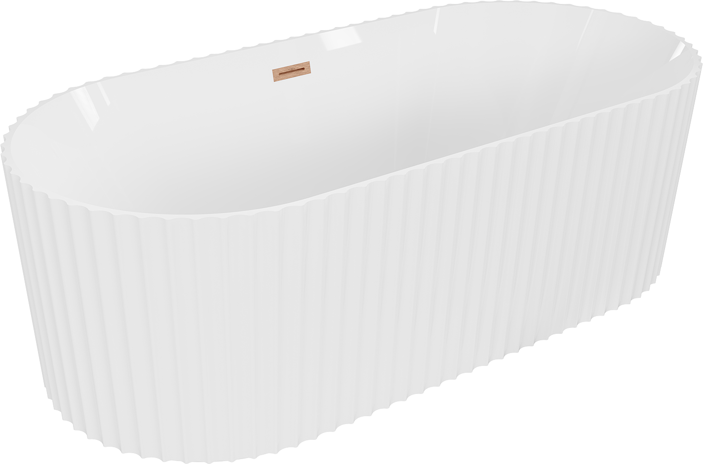 Mexen Paola vasca da bagno freestanding rigata 150 x 75 cm, bianco lucido, troppopieno rame spazzolato - 52721507500-65