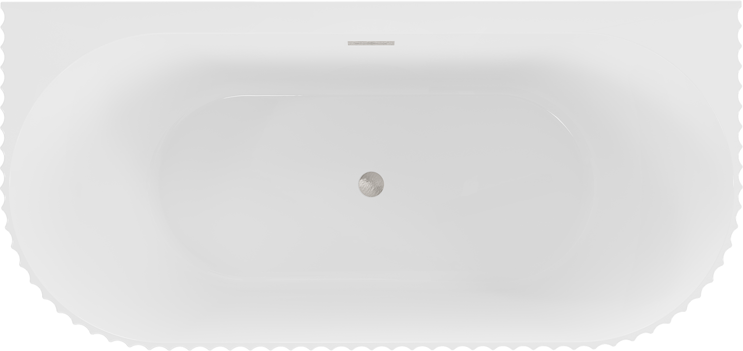 Mexen Sella vasca da bagno freestanding accostata a parete rigata 150 x 75 cm, bianca lucida, troppopieno in nichel spazzolato