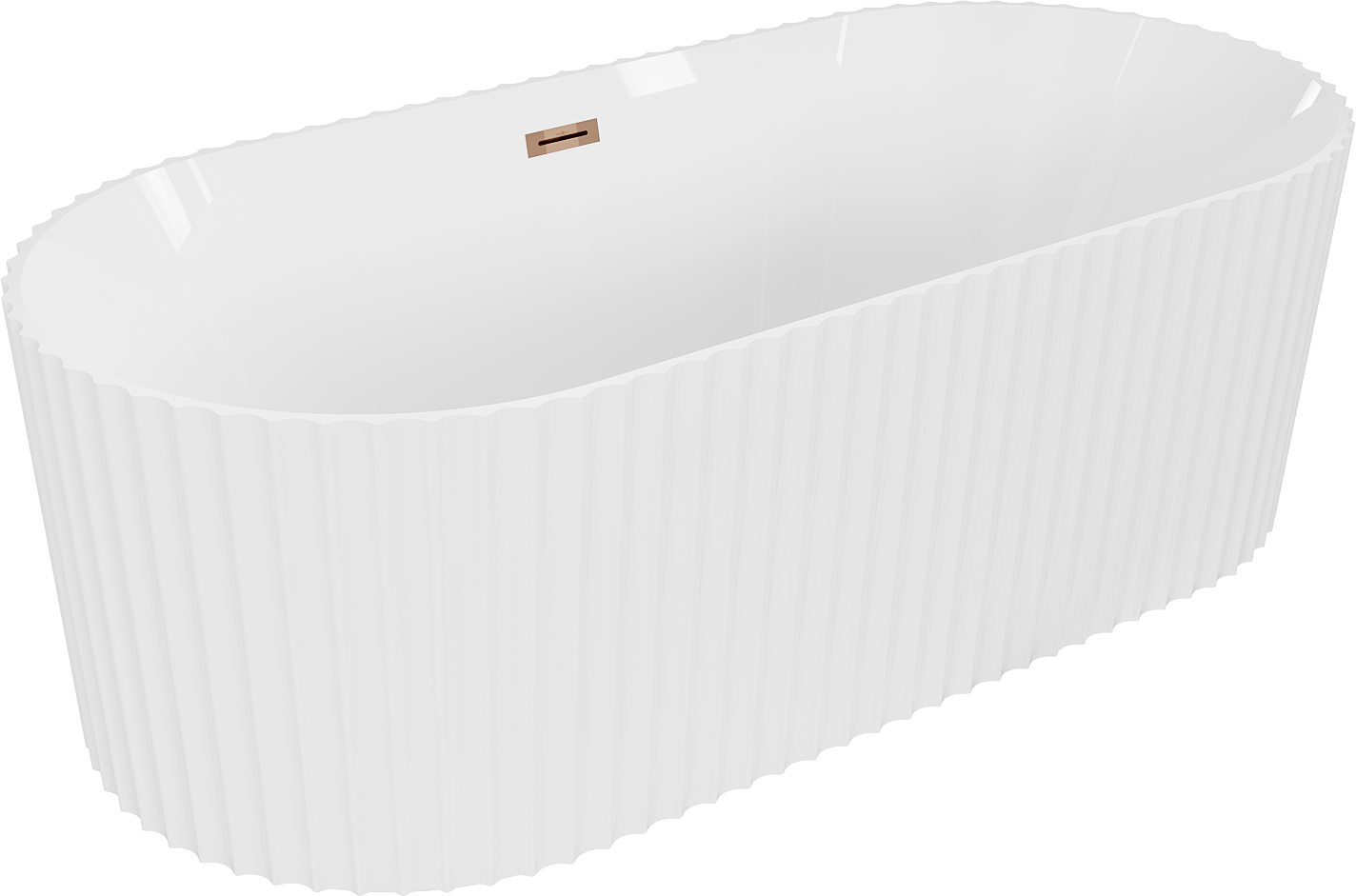 Mexen Paola vasca da bagno autoportante scanalata 170 x 80 cm, bianco lucido, troppopieno oro rosa - 52721708000-60