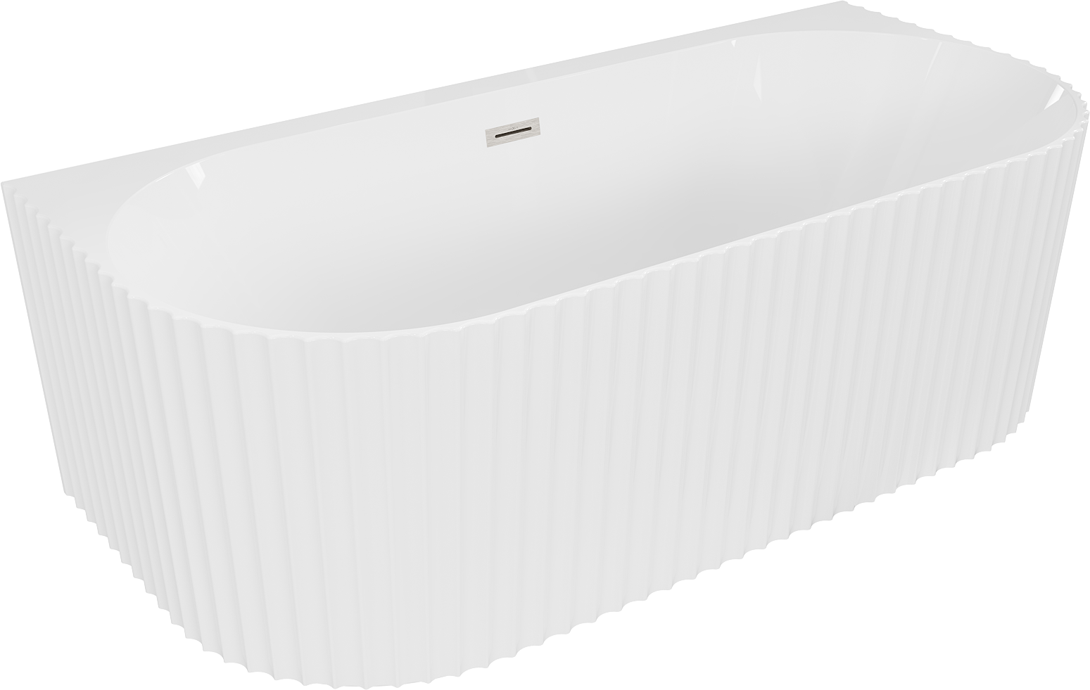 Mexen Sella vasca da bagno freestanding adiacente alla parete con scanalature 170 x 80 cm, bianco lucido, troppopieno nichel