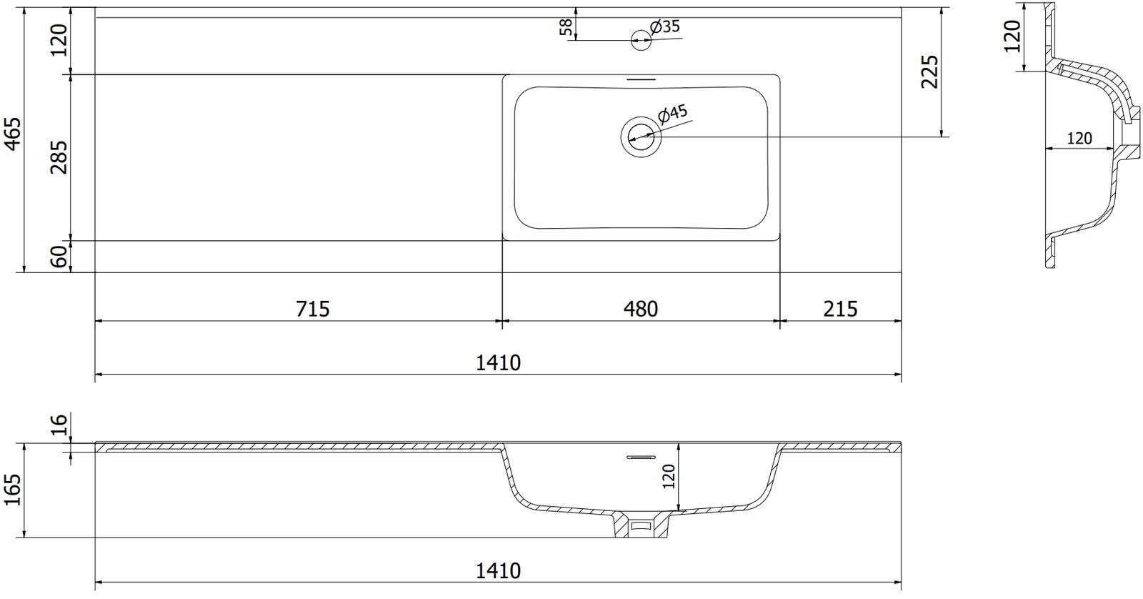 Mexen Otis lavabo da incasso a destra 141 x 46,5 cm, bianco lucido - 25181400P