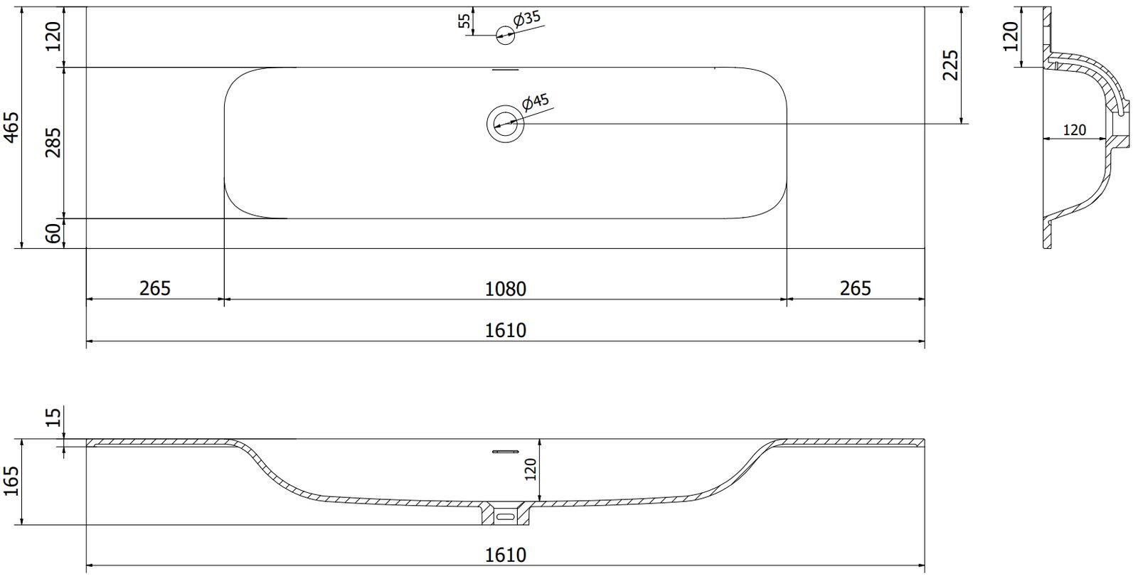 Mexen Vela lavandino incassato nel piano 161 x 46,5 cm, bianco lucido - 25231600