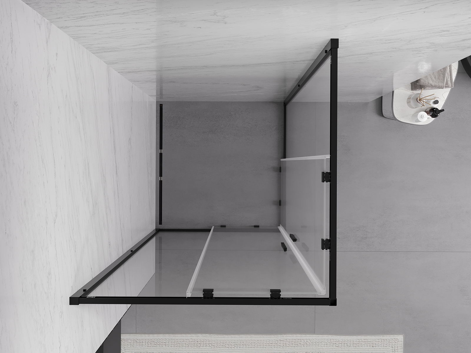 Il prodotto, a seconda delle esigenze, può essere installato sia sul piatto doccia che direttamente sul pavimento. Il metodo di installazione universale consente di adattare il prodotto a diversi tipi di bagni e configurazioni di spazio.
