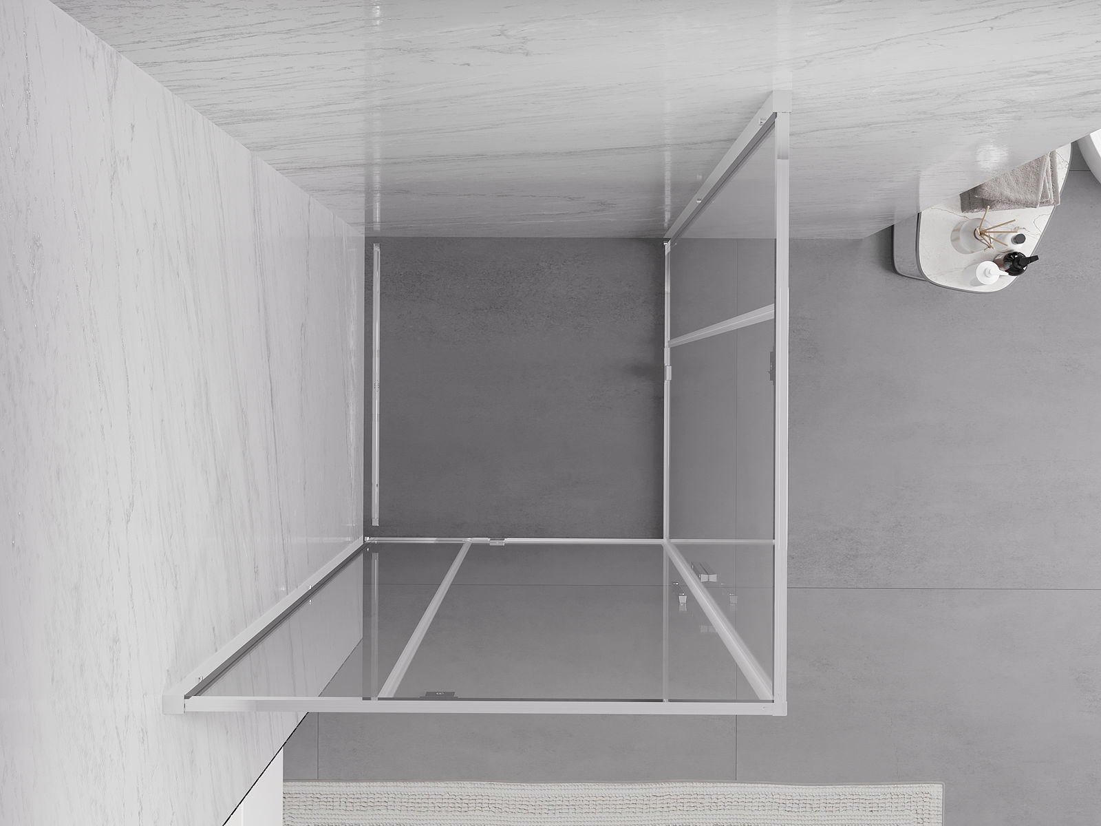 Il prodotto, a seconda delle esigenze, può essere installato sia sul piatto doccia che direttamente sul pavimento. Il metodo di installazione universale consente di adattare il prodotto a diversi tipi di bagni e configurazioni di spazio.