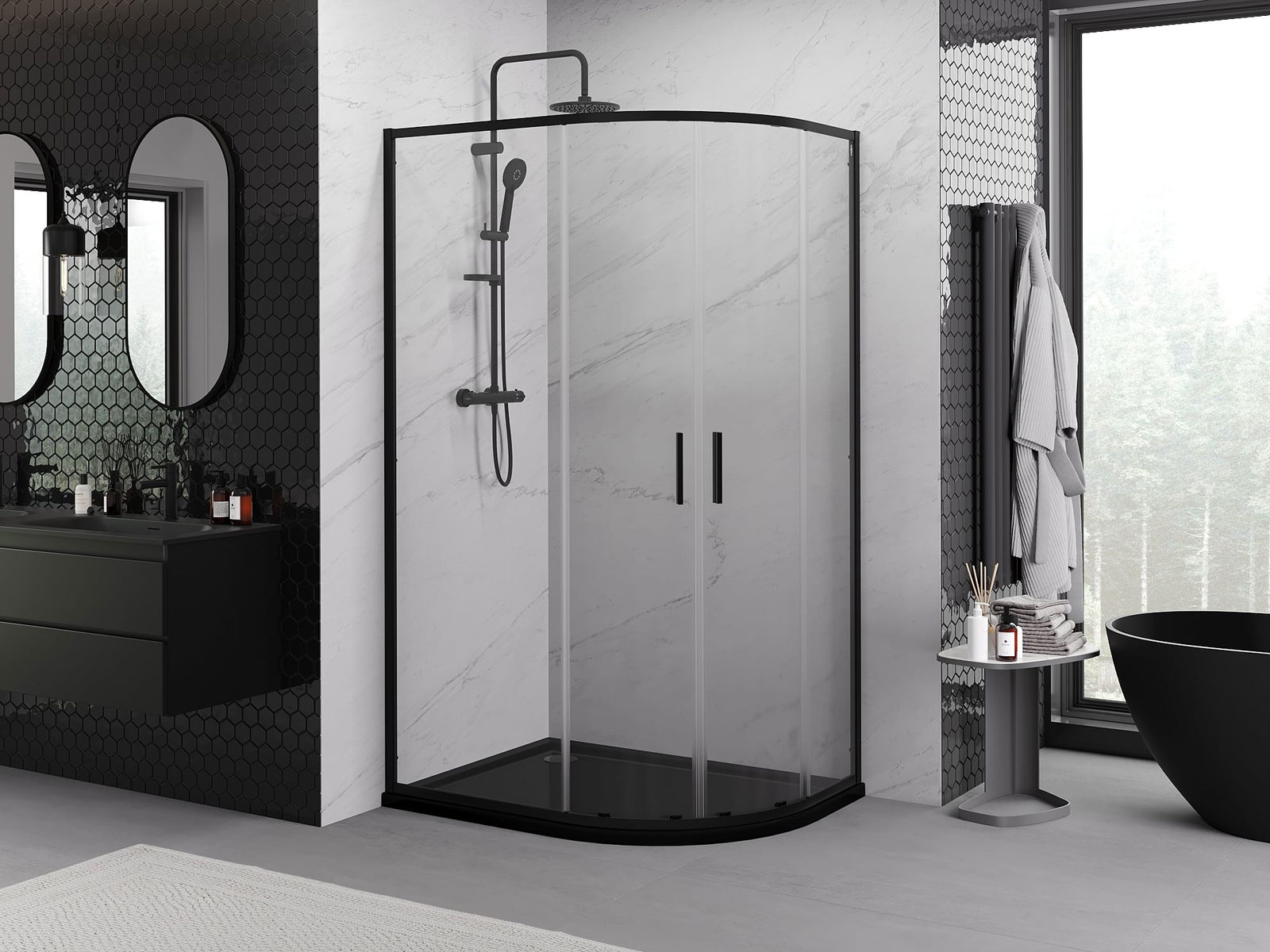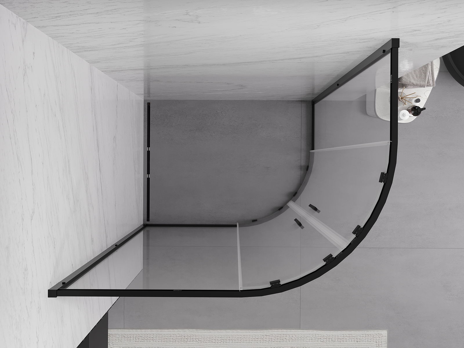Mexen Exo cabina doccia semicircolare asimmetrica scorrevole 100 x 80 cm, trasparente, nero - 8132-100-080-70-00