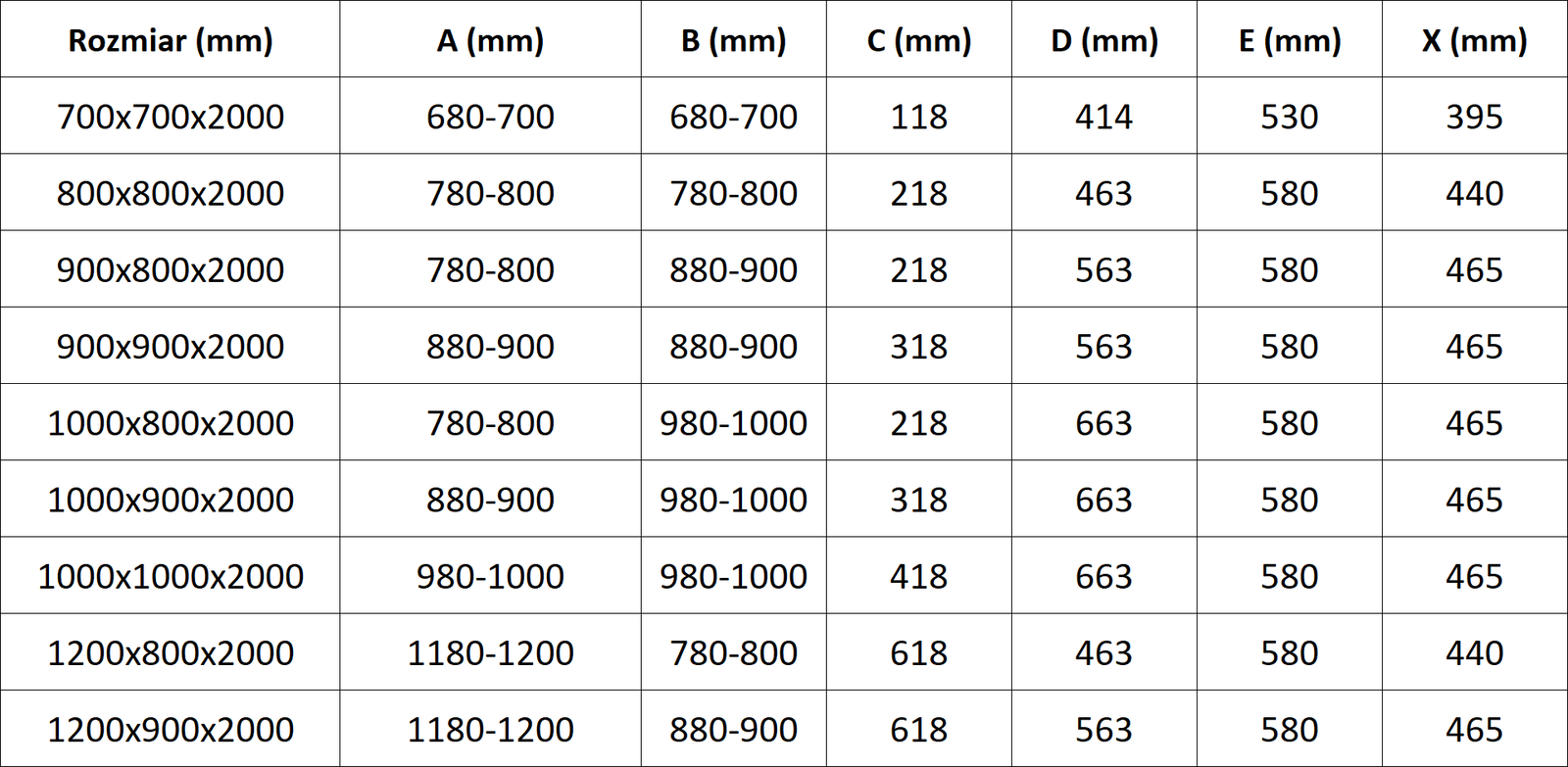 Spessore del vetro: 6 mm