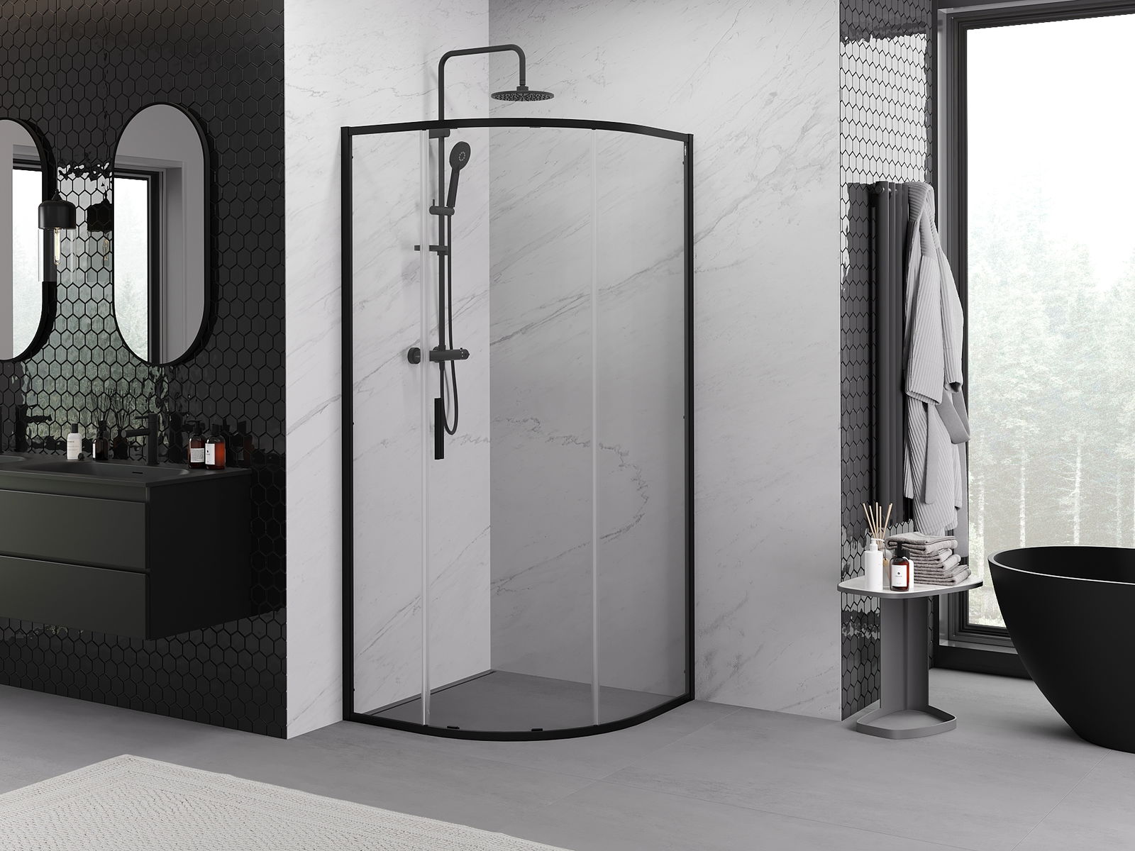 Mexen Exo cabina doccia semicircolare scorrevole 70 x 70 cm, trasparente, nera - 8131-070-070-70-00