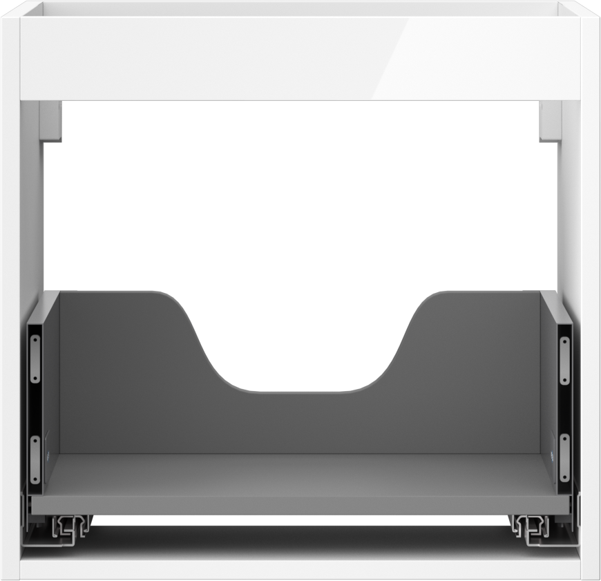 Il ritaglio nel cassetto è progettato in modo da ospitare il sifone, che è necessario nelle installazioni dei lavandini. Grazie a ciò, il mobile può essere montato in modo completamente funzionale, senza dover rinunciare allo spazio nel cassetto a favore dell'installazione.