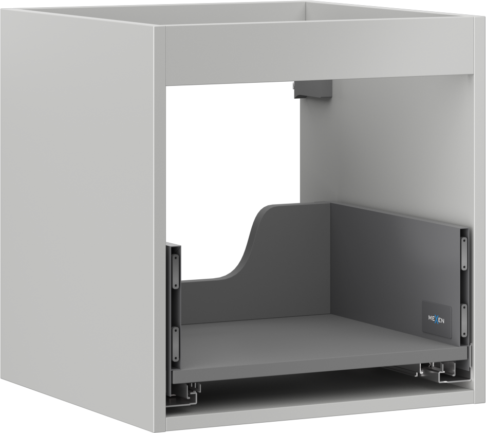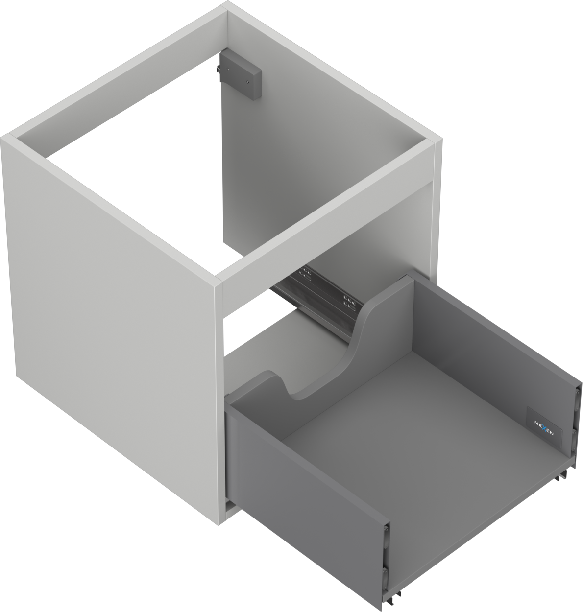 Il ritaglio nel cassetto è progettato in modo da ospitare il sifone, che è necessario nelle installazioni dei lavandini. Grazie a ciò, il mobile può essere montato in modo completamente funzionale, senza dover rinunciare allo spazio nel cassetto a favore dell'installazione.