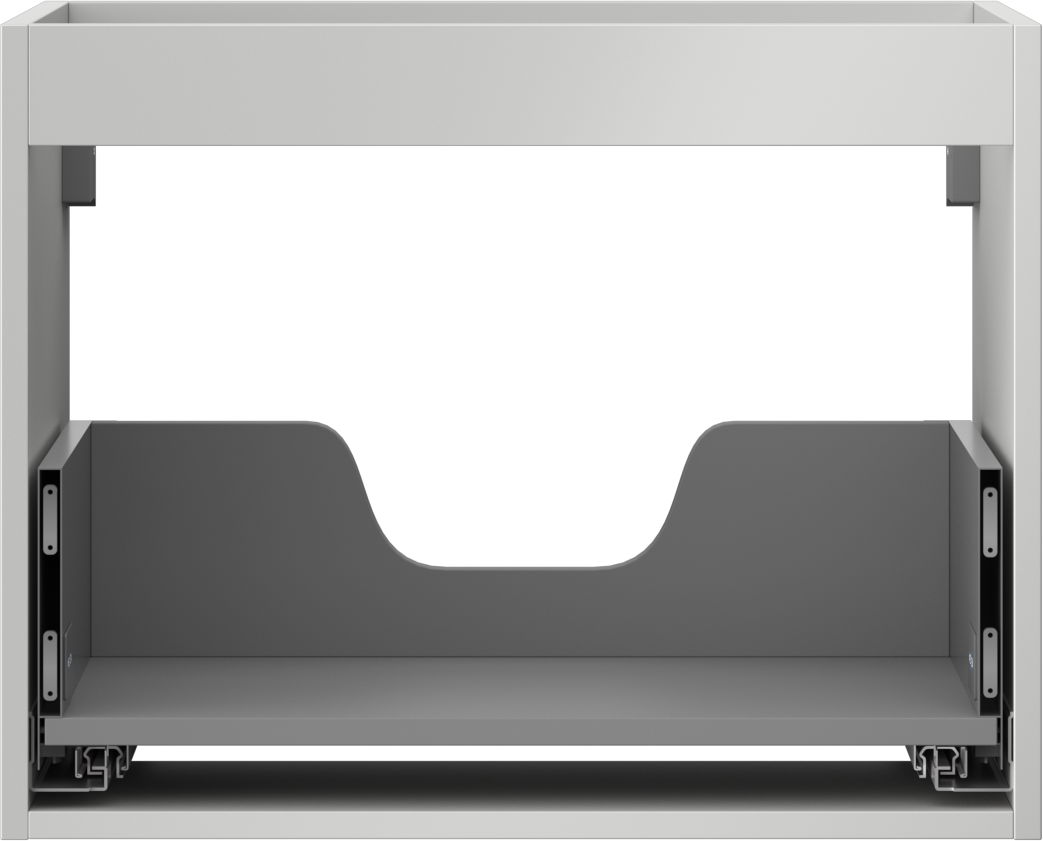 Il ritaglio nel cassetto è progettato in modo da ospitare il sifone, che è necessario nelle installazioni dei lavandini. Grazie a ciò, il mobile può essere montato in modo completamente funzionale, senza dover rinunciare allo spazio nel cassetto a favore dell'installazione.