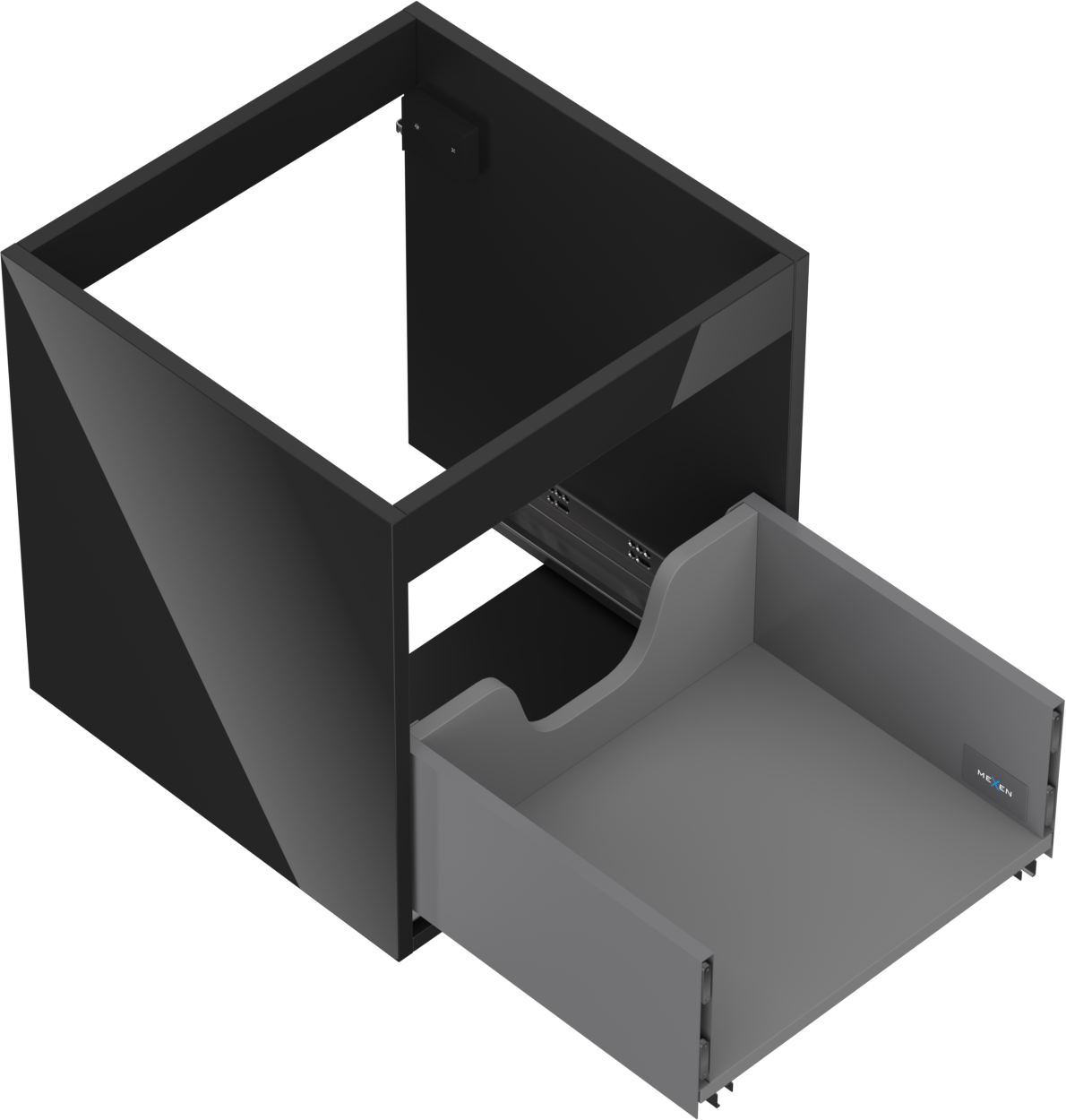 Il ritaglio nel cassetto è progettato in modo da ospitare il sifone, che è necessario nelle installazioni dei lavandini. Grazie a ciò, il mobile può essere montato in modo completamente funzionale, senza dover rinunciare allo spazio nel cassetto a favore dell'installazione.